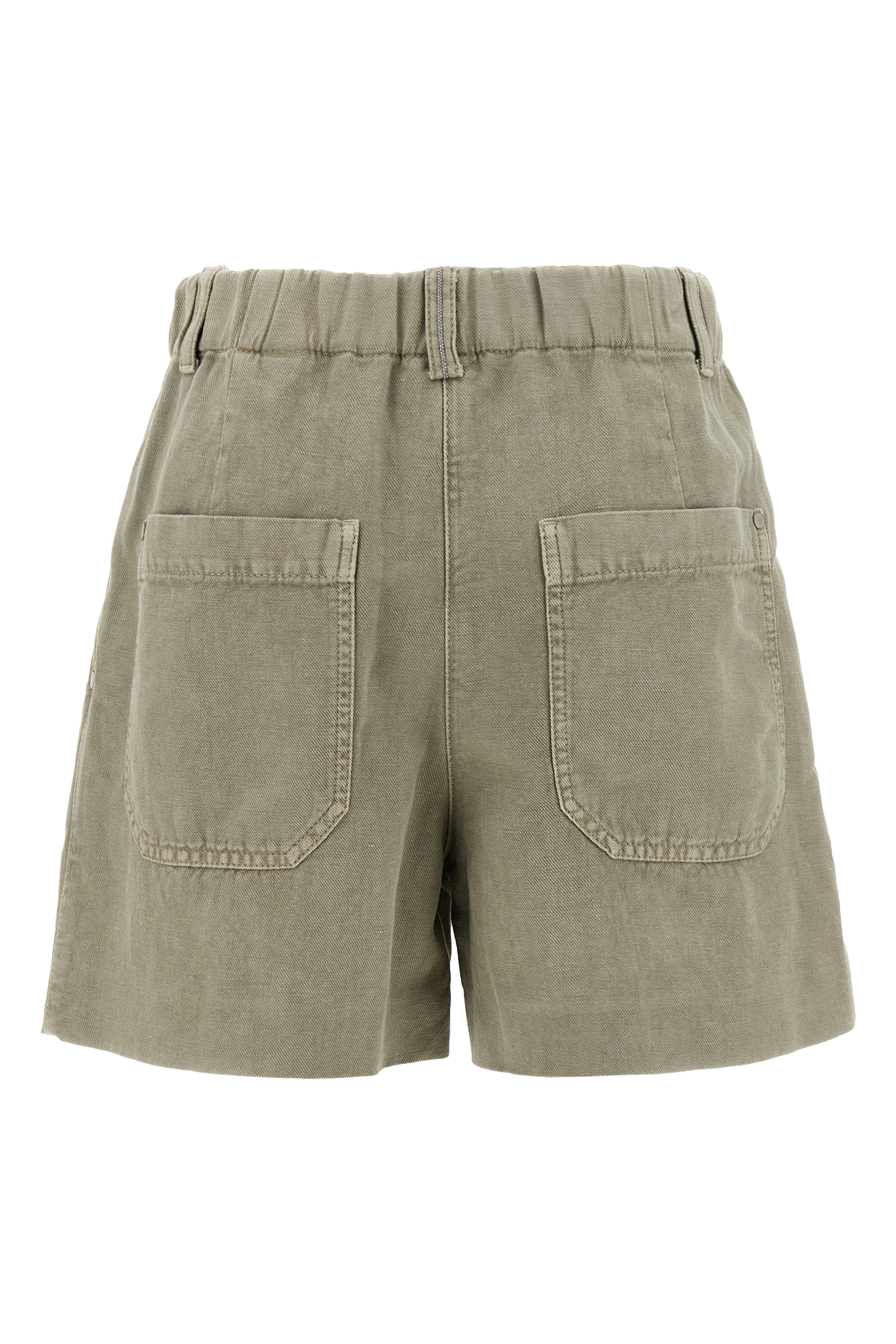 Garment-dyed cotton and linen blend shorts, back Monile detail, zip, hook and front button closure, pince, pockets, elastic waistband.