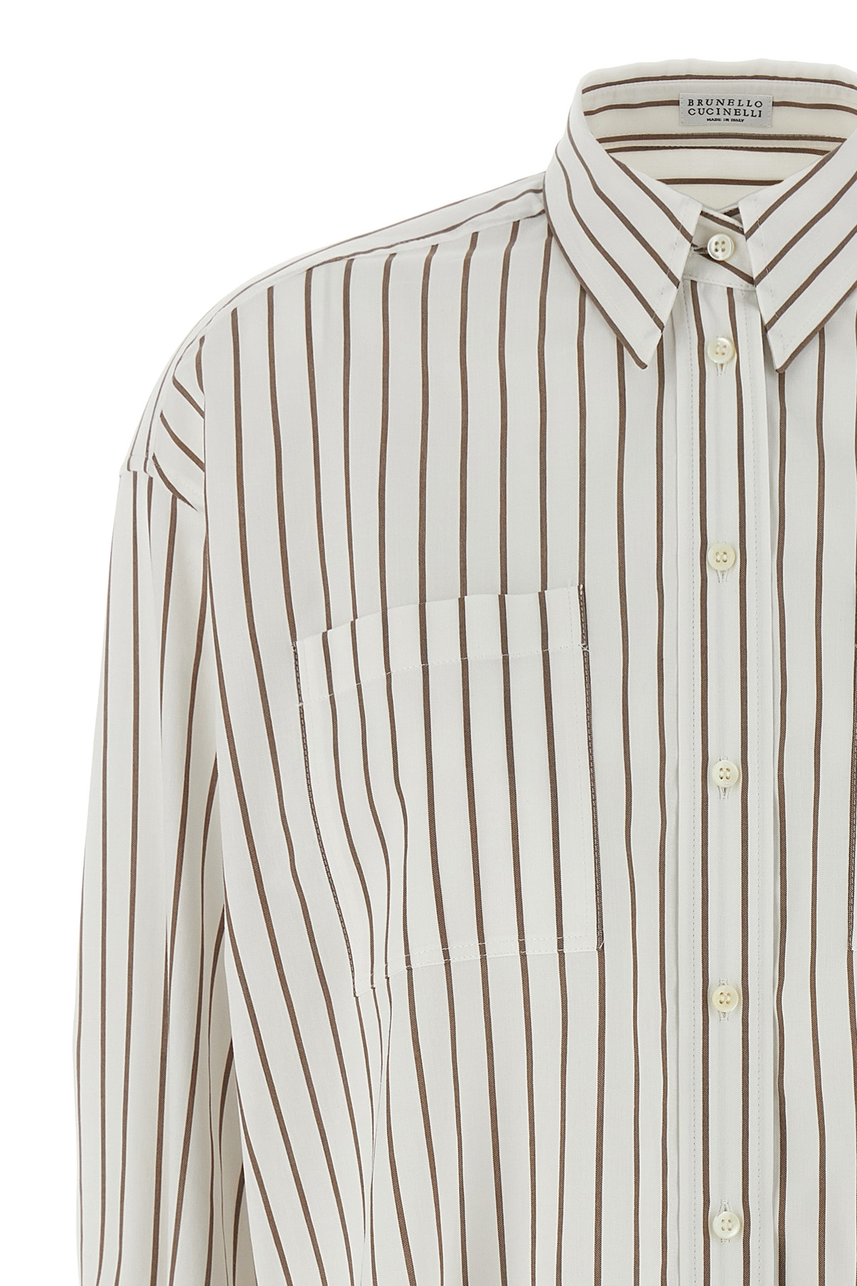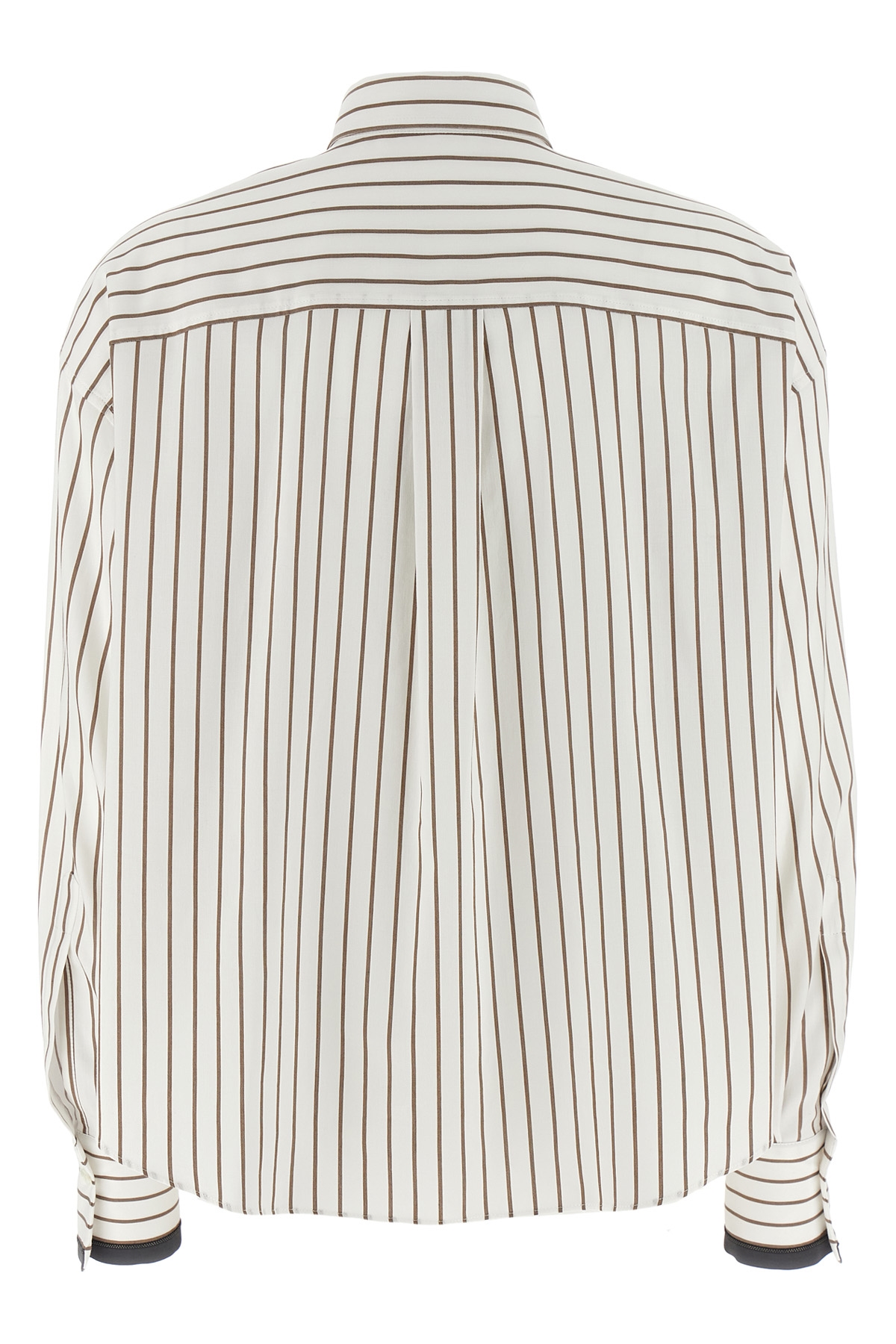 Striped cotton shirt, long sleeves with Monile detail on the cuffs, front button closure, pockets.