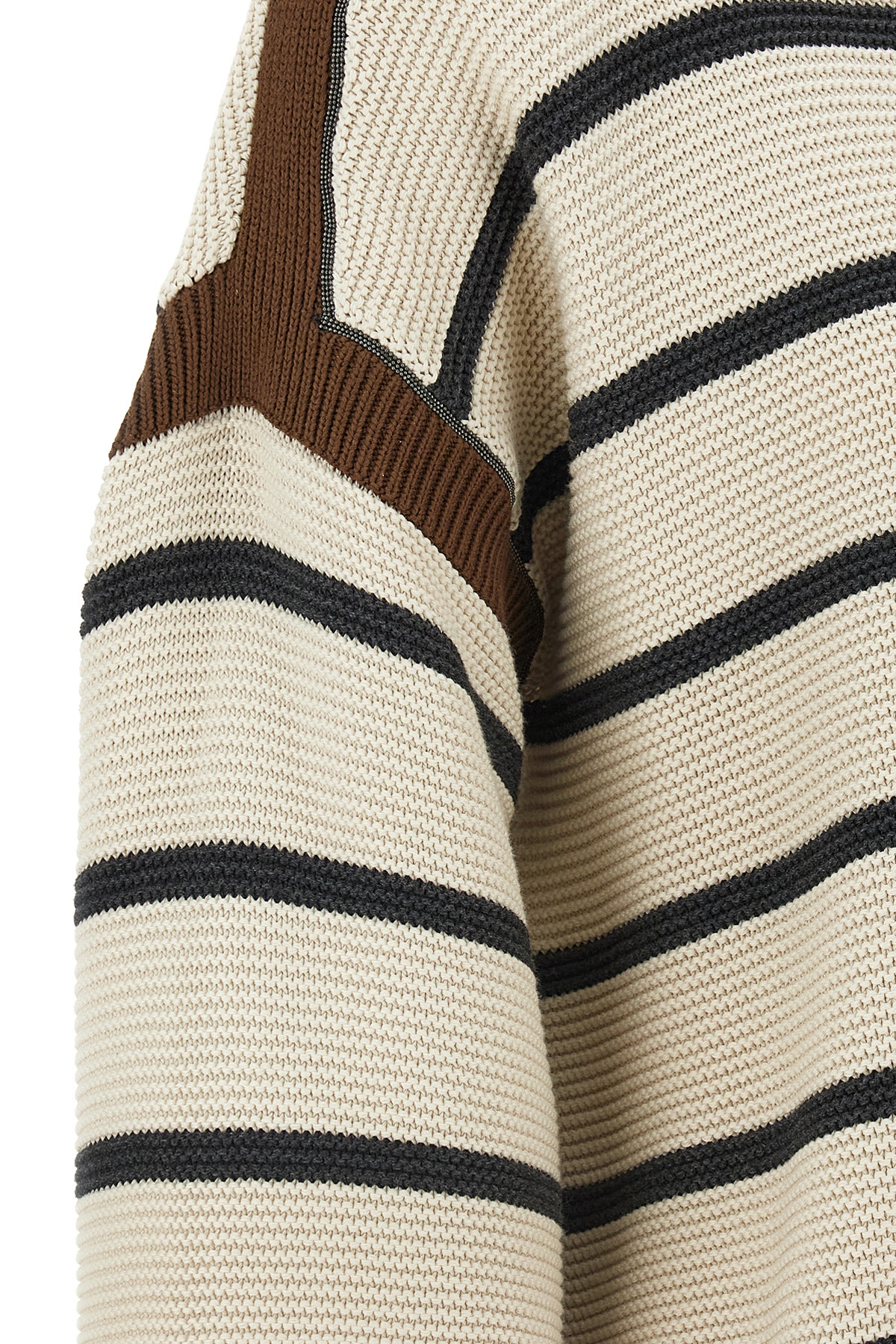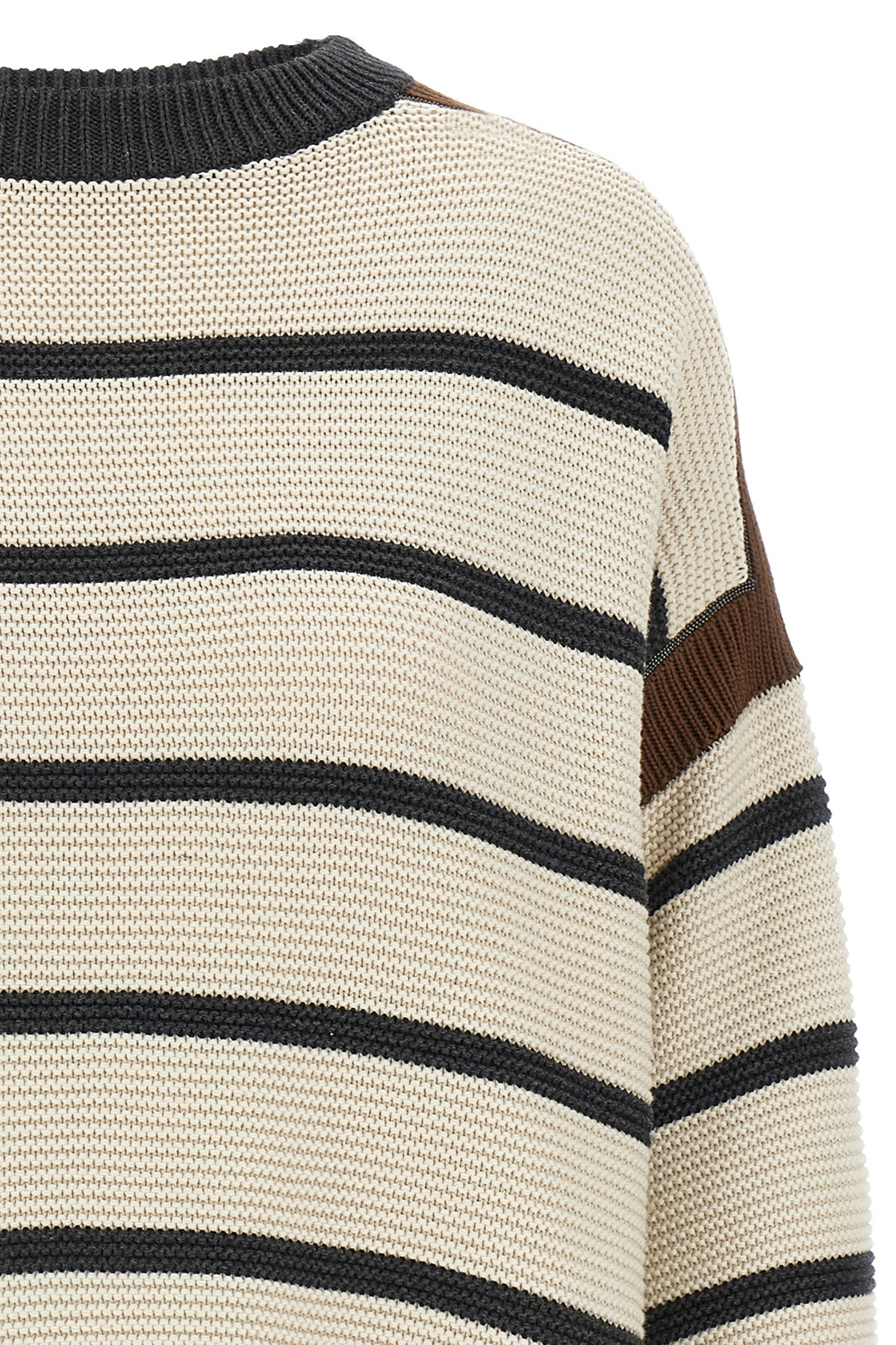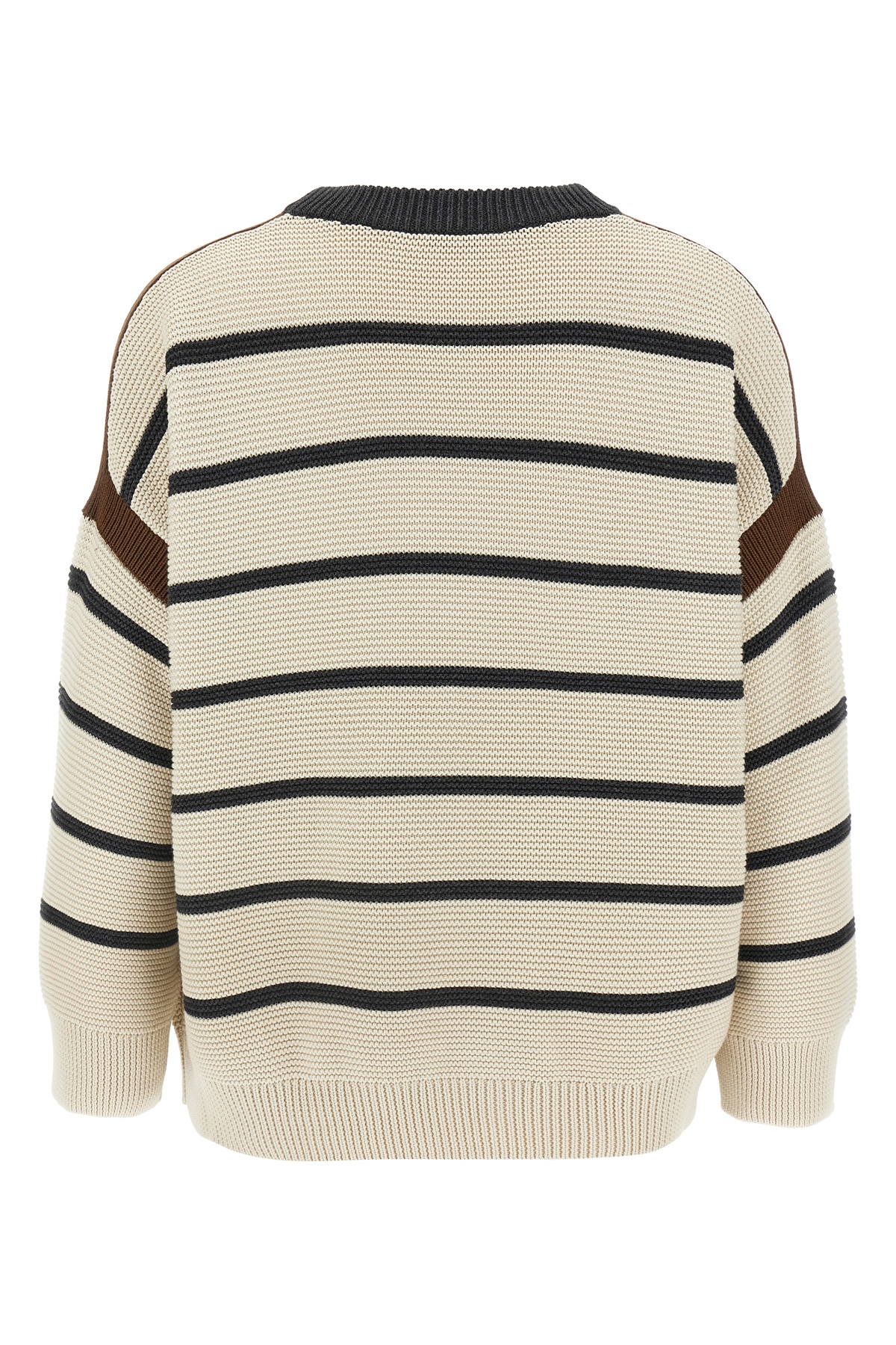 Knitted cotton sweater with contrast details and Monile trim, crew neck, long sleeves with dropped shoulders.