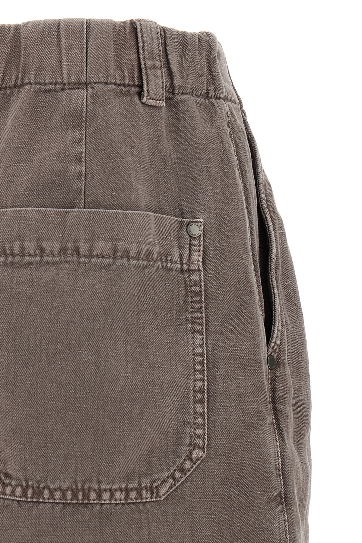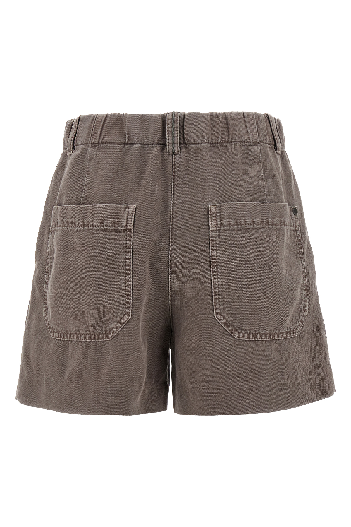 Garment-dyed cotton and linen blend shorts, back Monile detail, zip, hook and front button closure, pince, pockets, elastic waistband.