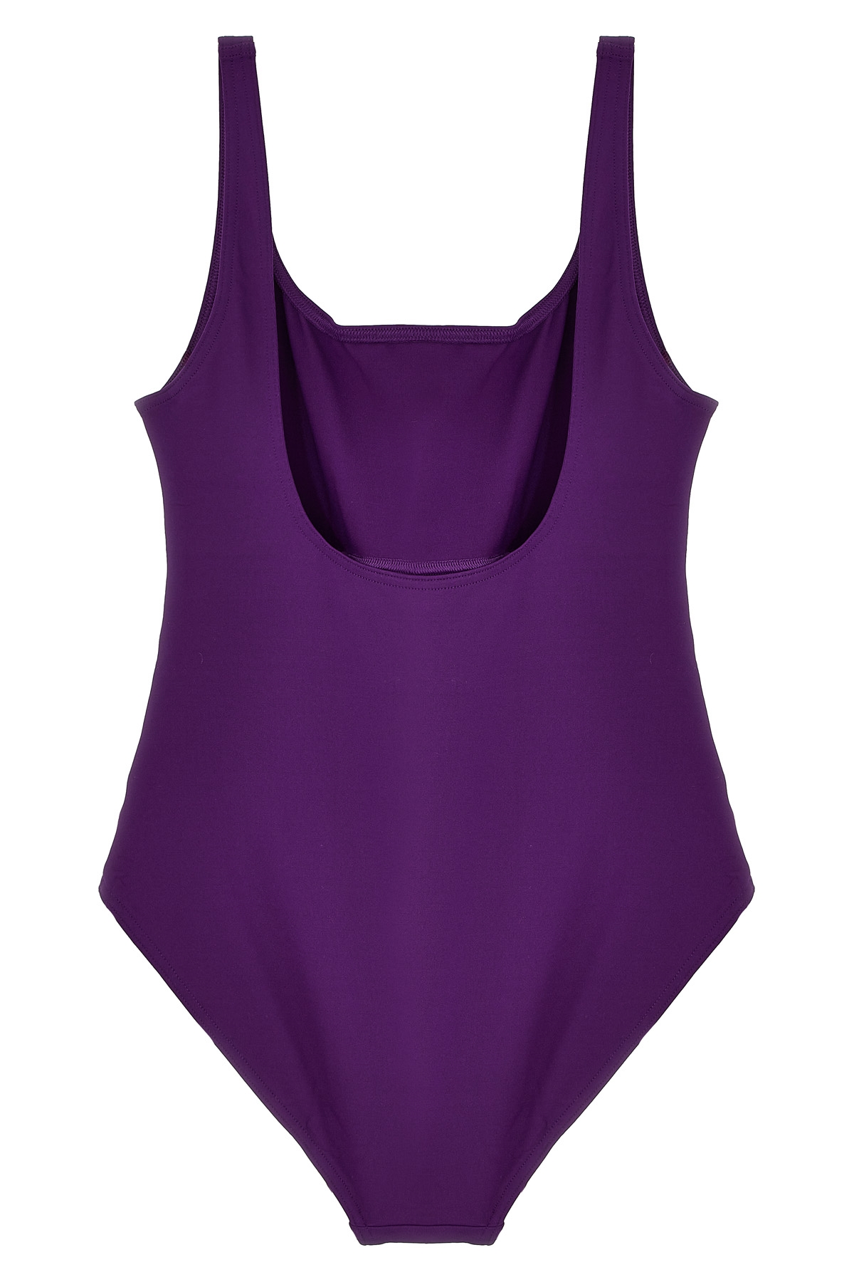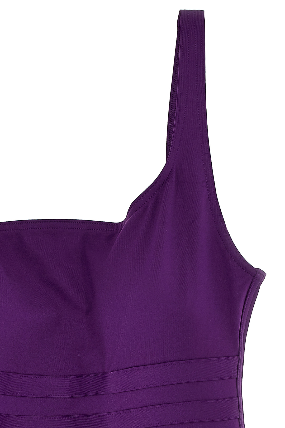 'Asia' one-piece swimsuit in Peau Douce* fabric with wide straps, square neckline at the front, round neckline at the back, and bands at the waist to define the silhouette.