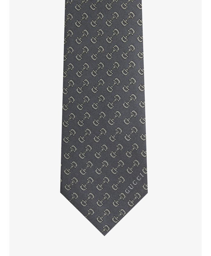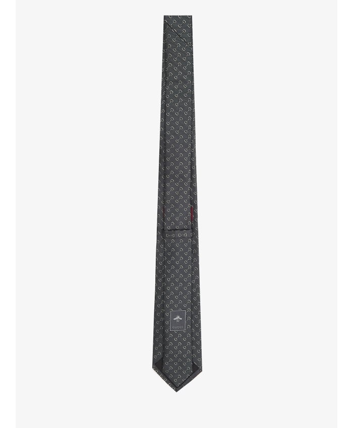 Black and dark grey jacquard silk tie with all-over Horsebit. Gucci label with bee at the back.Dimensions: 7x148cm