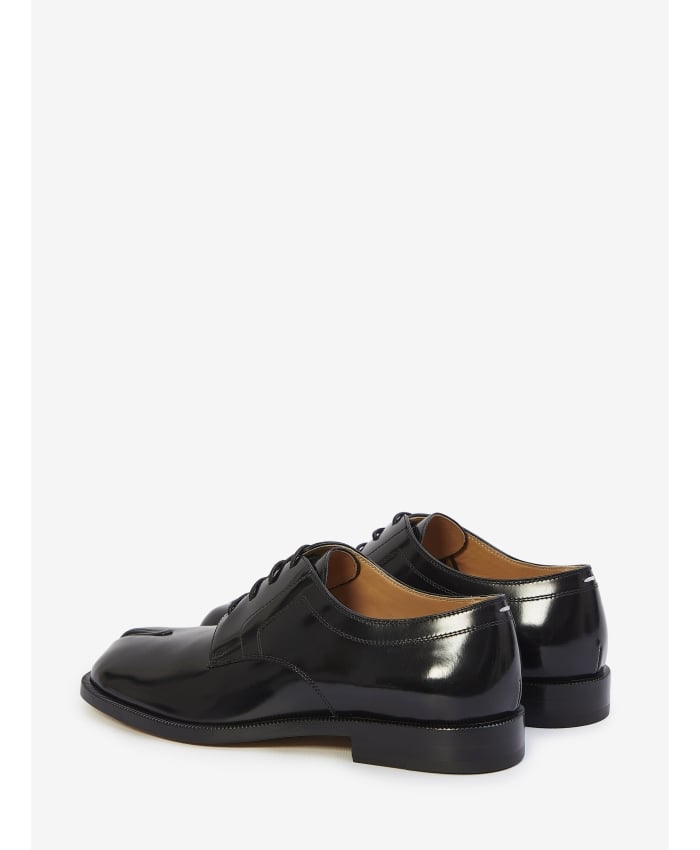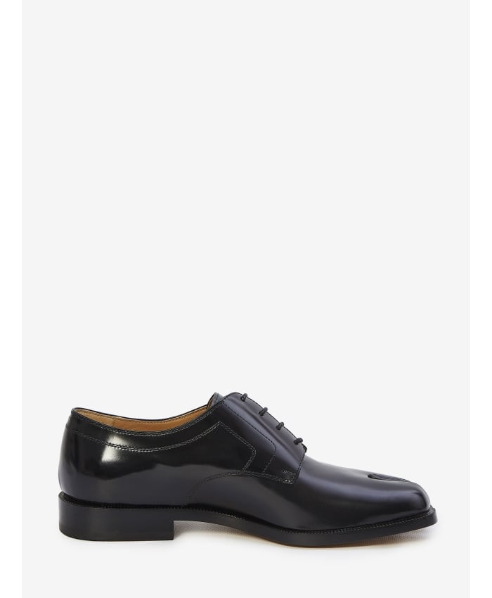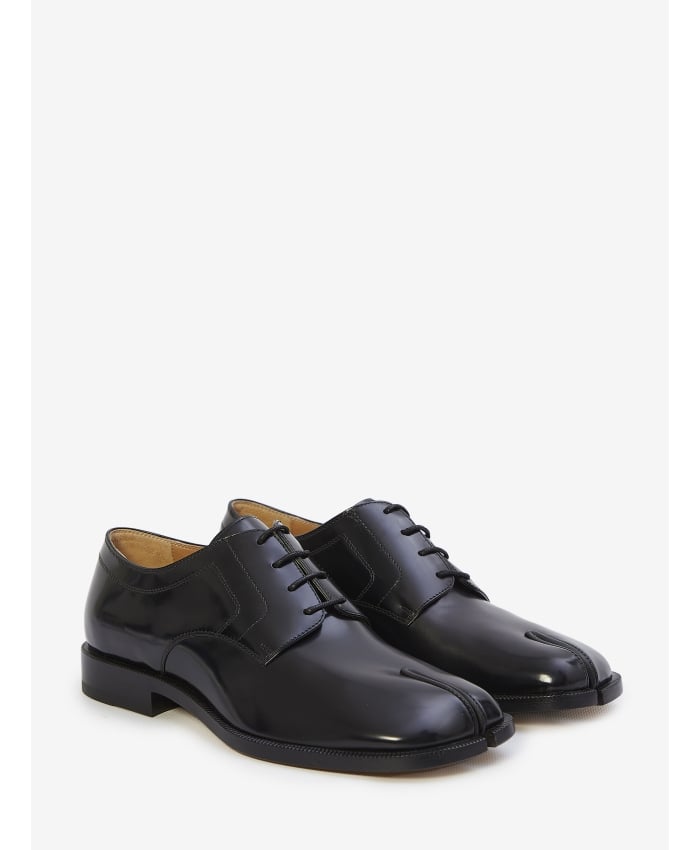 Derby shoes in in shiny black leather with Tabi toe. Lace-up closure and leather sole. ITA size.