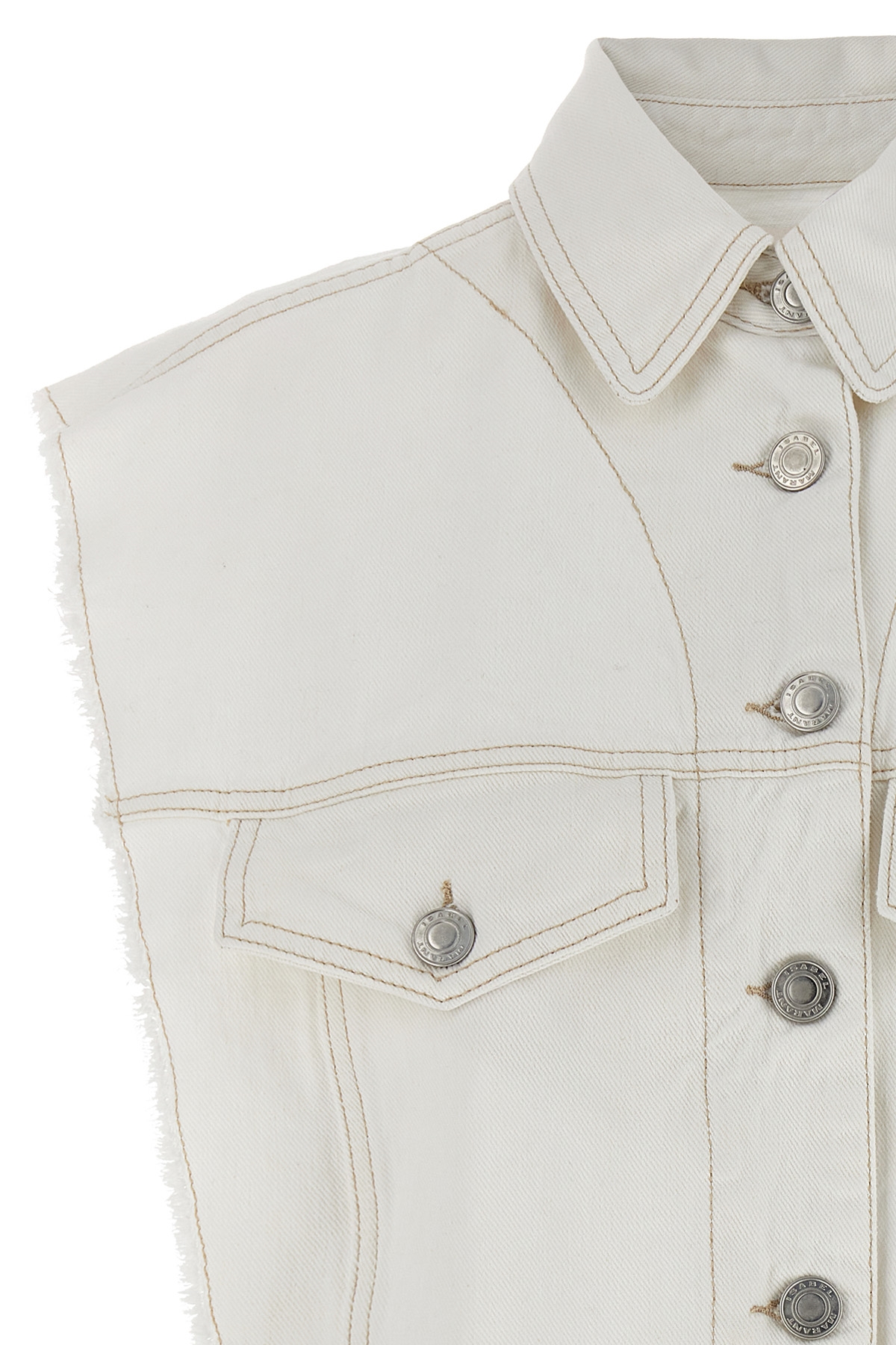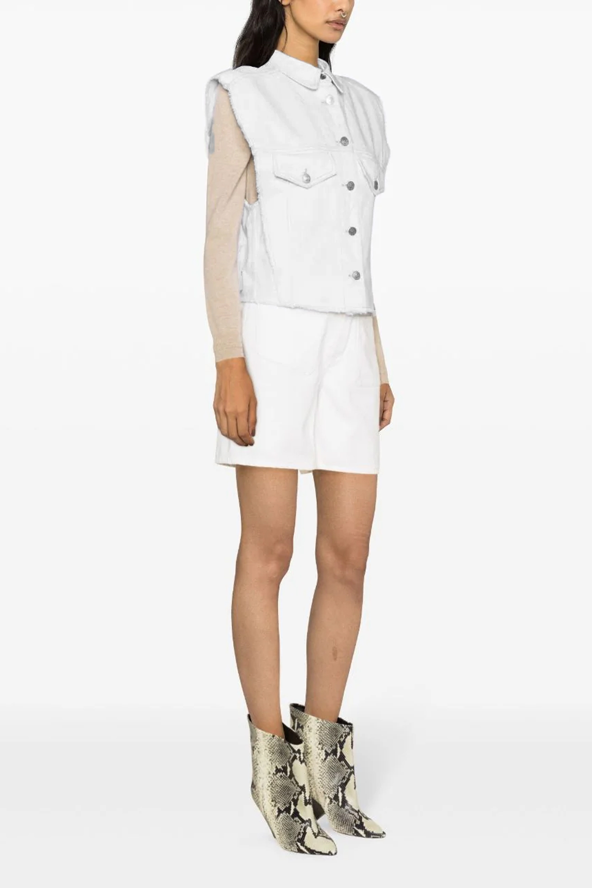 'Tyra' vest in cotton denim with frayed details, button closure, pockets.
