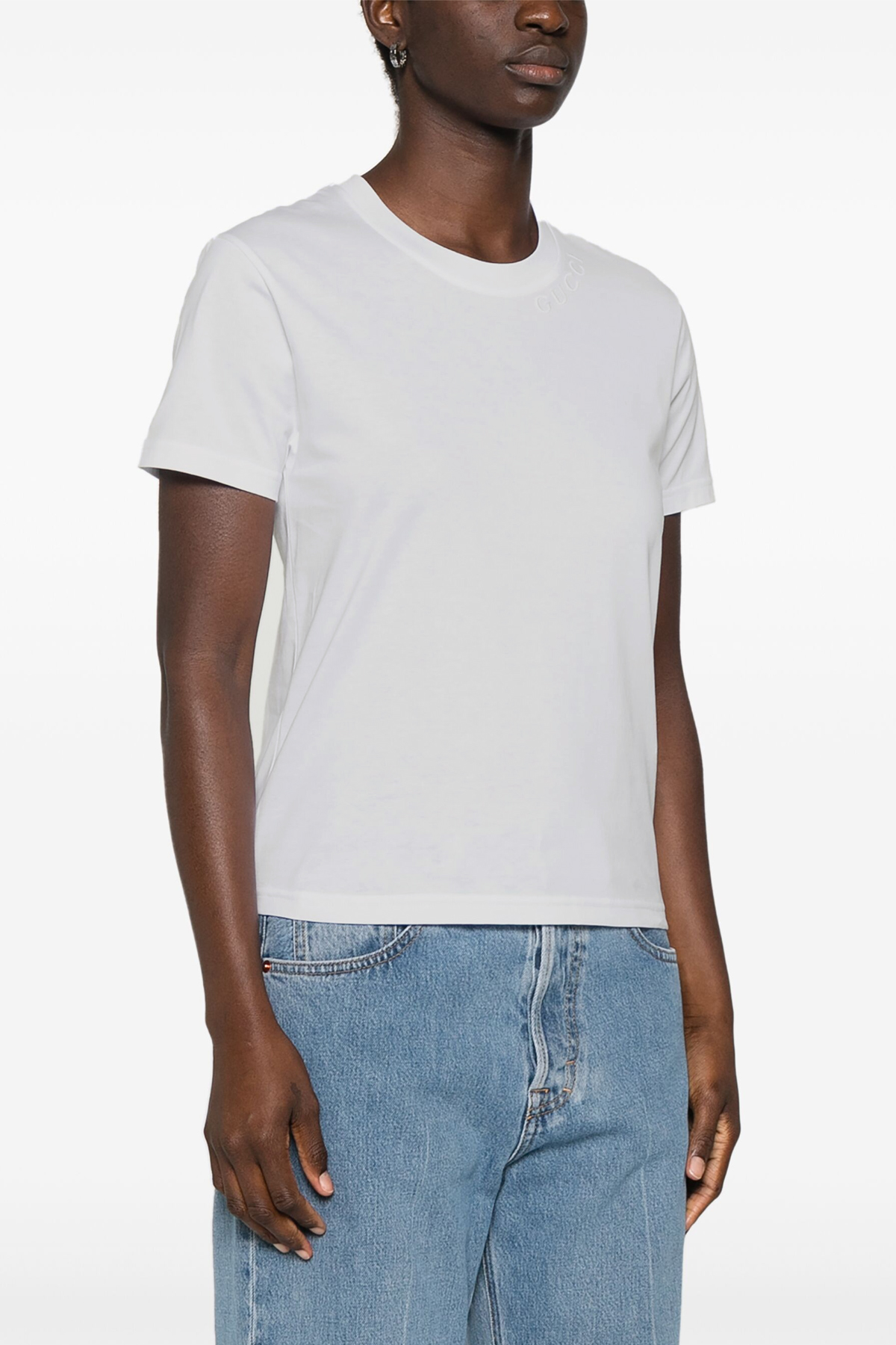 Cotton crew neck t-shirt with logo embroidery, short sleeves.