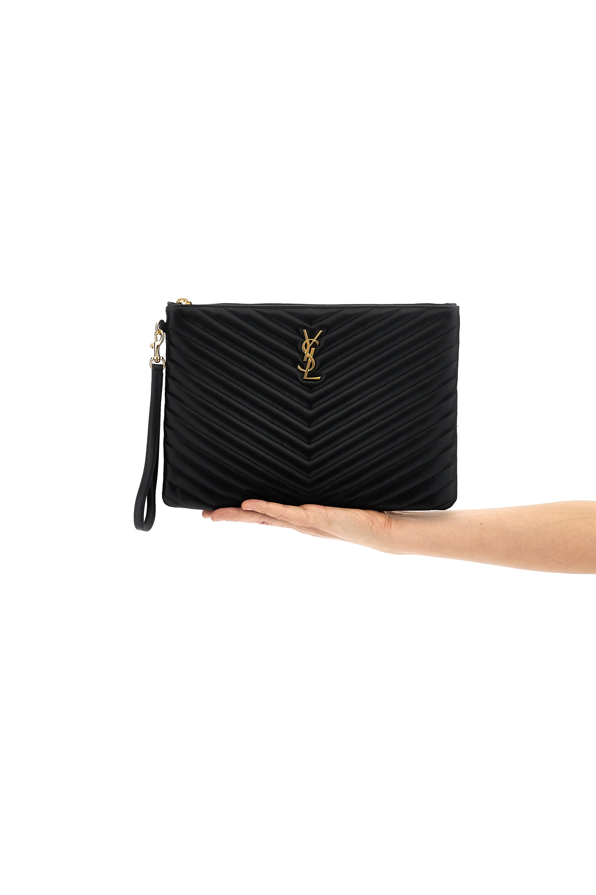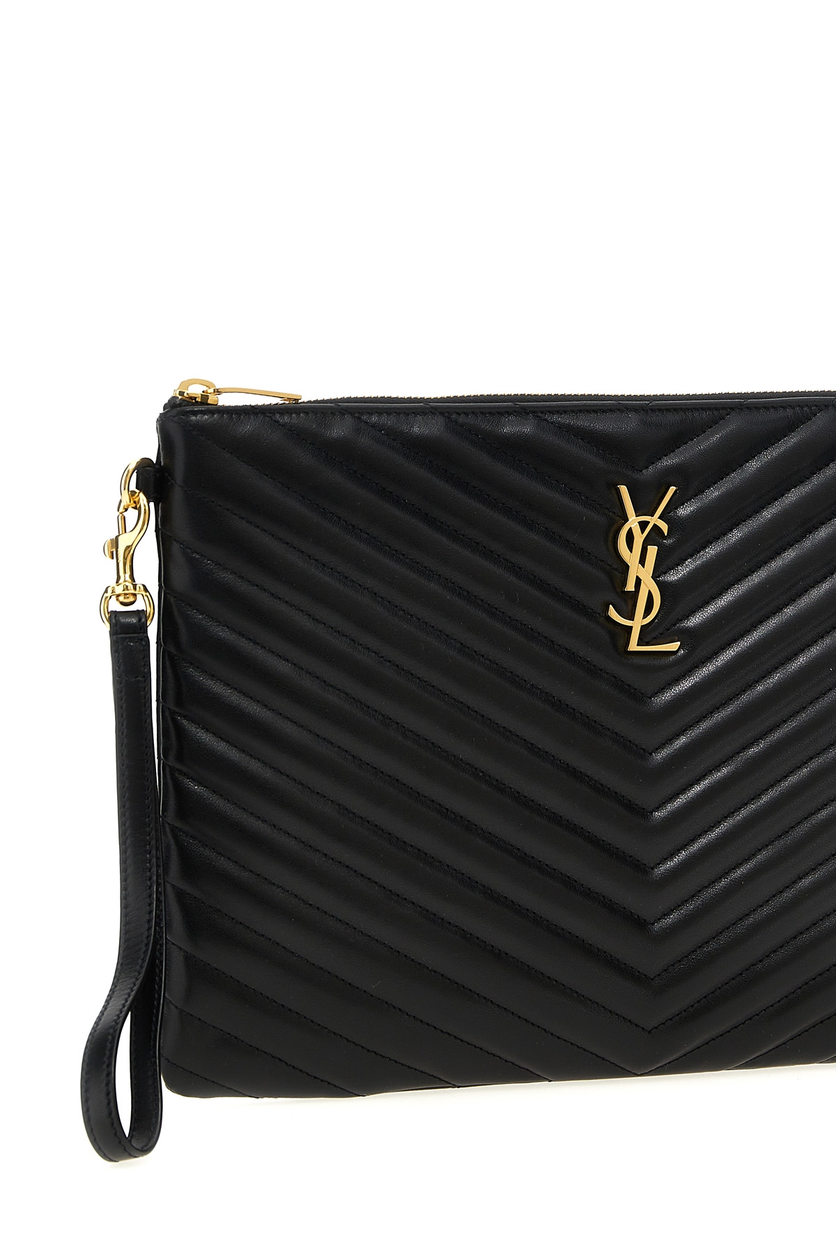Medium 'Cassandre matelasse' quilted leather tablet holder, front metal logo, zip closure, removable handle.