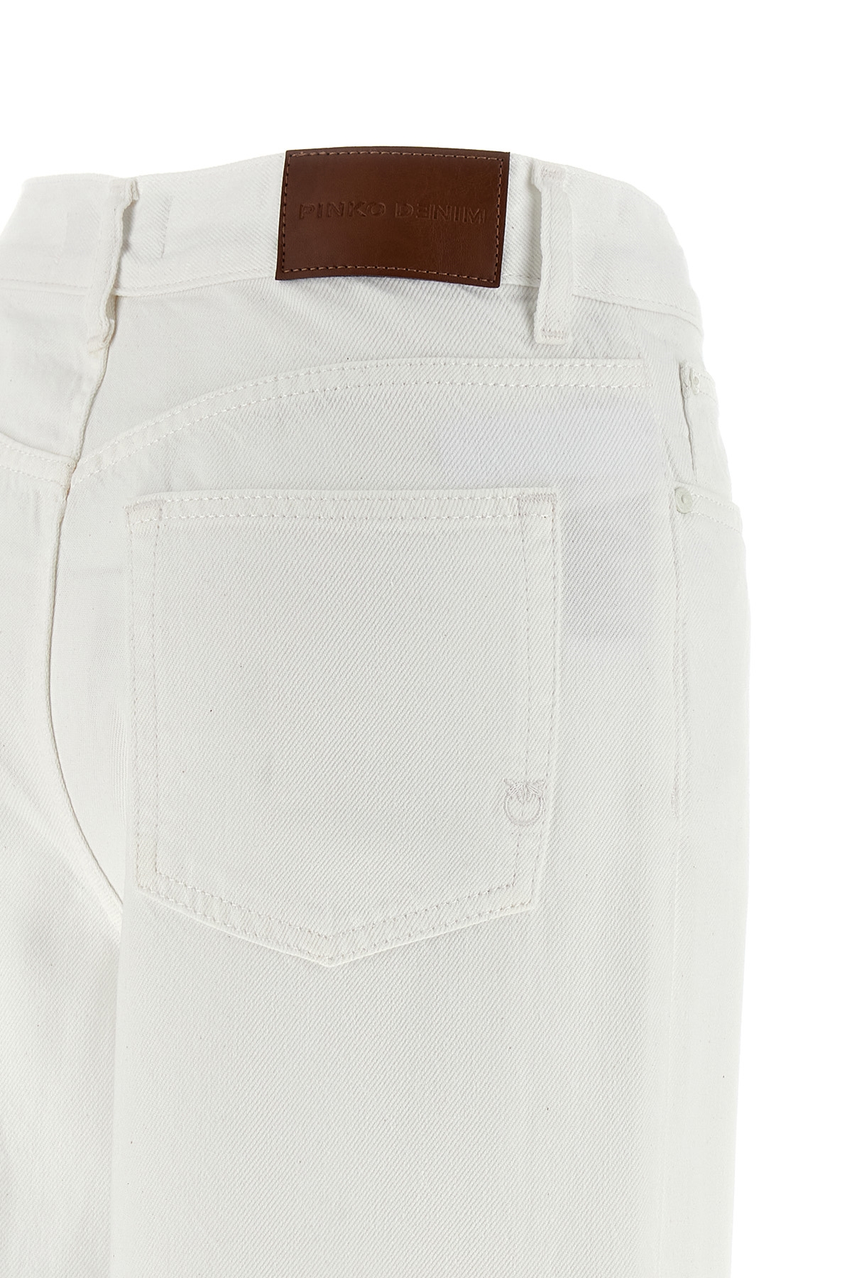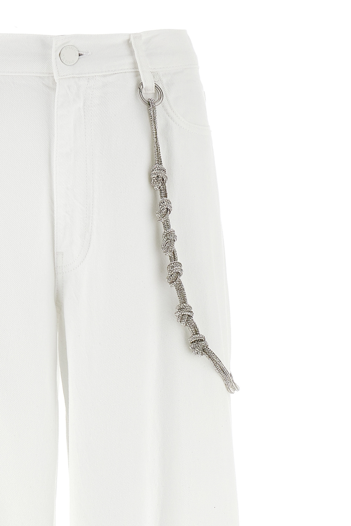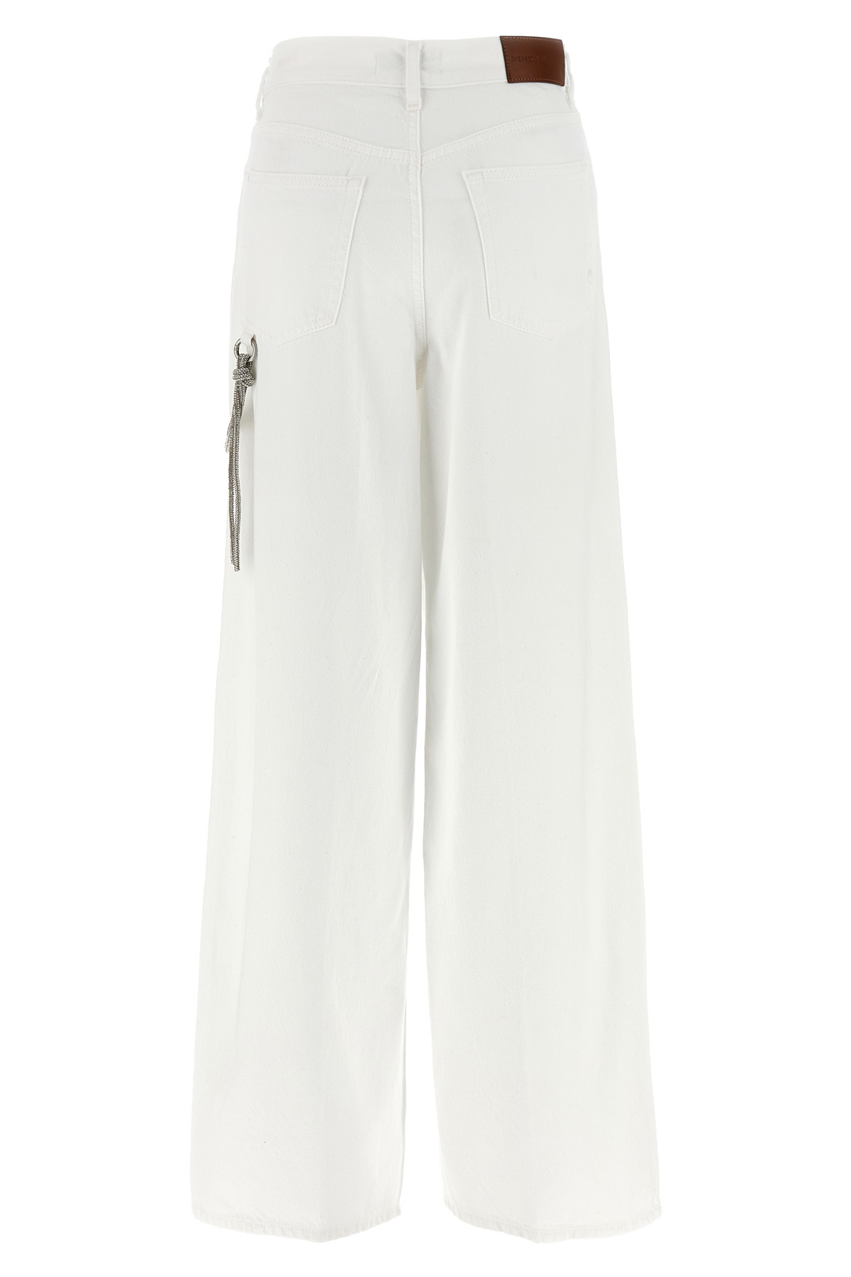'Lauryn' trousers in untied cotton bull, model with low crotch and wide and long leg, removable jewel chain, five pockets, front zip and button closure, back leather logo tag.