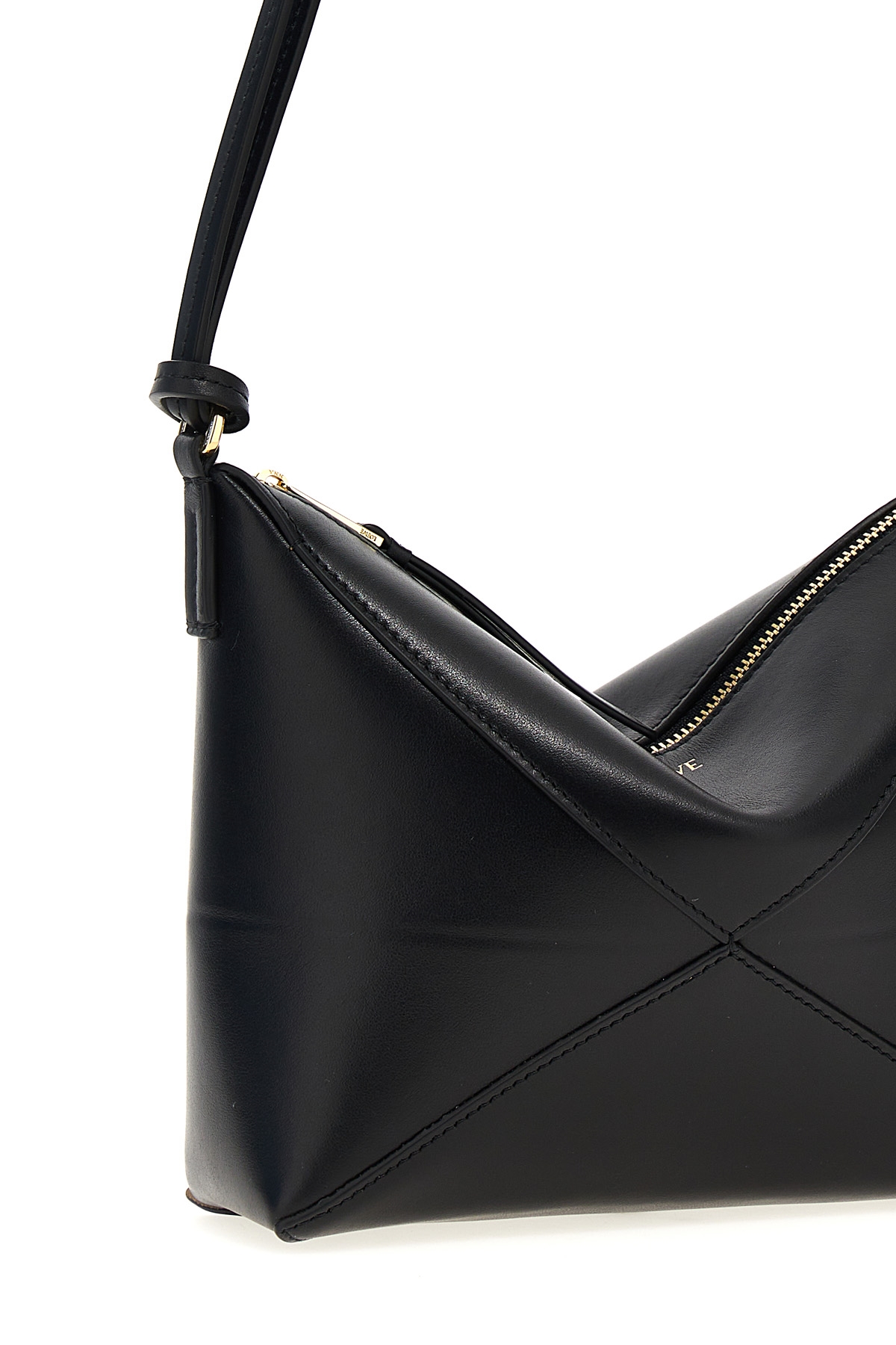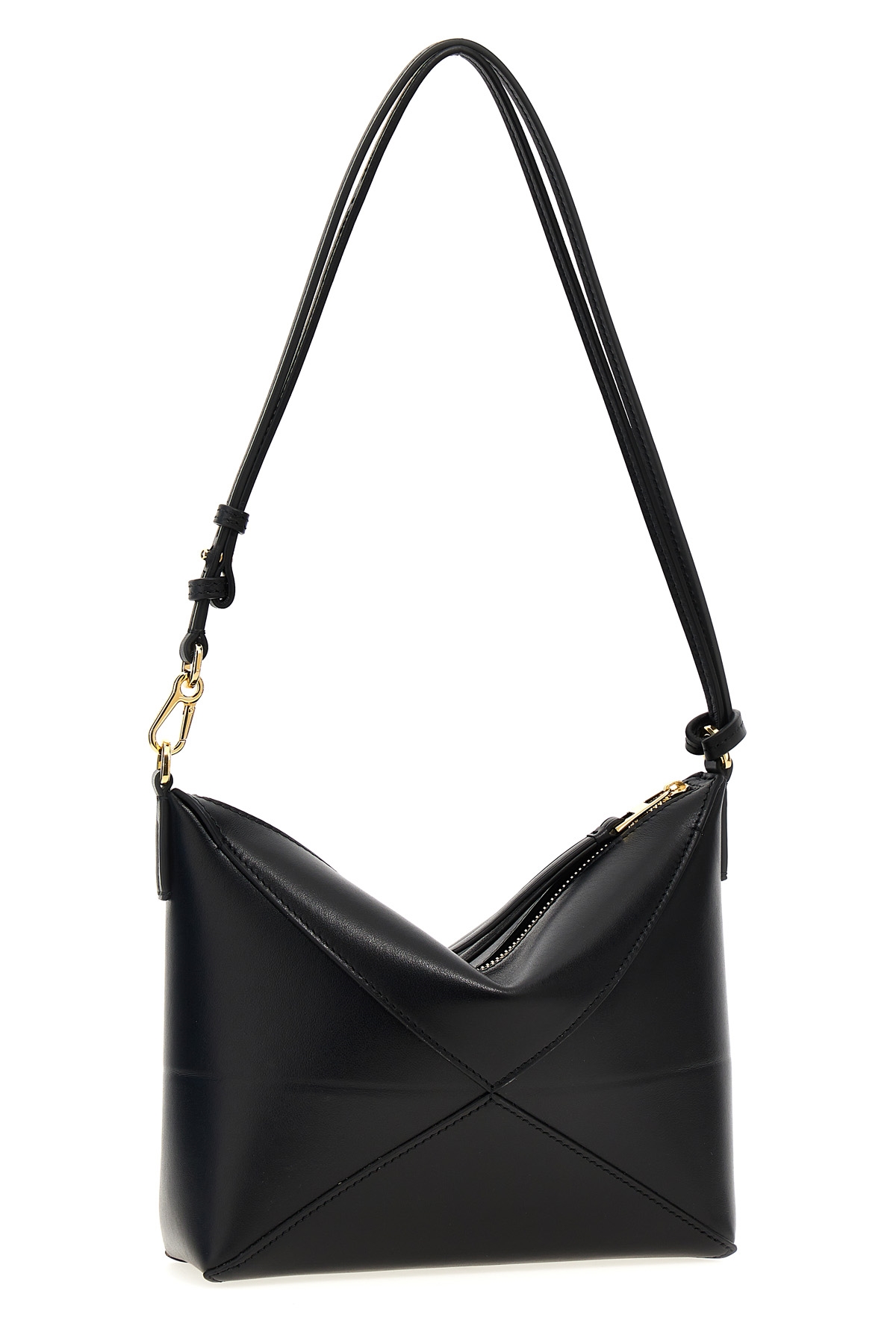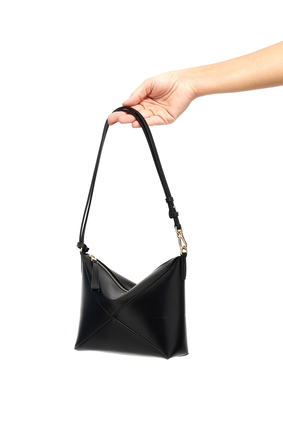 'Puzzle Fold' nappa pouch, zip closure, adjustable and removable shoulder strap.