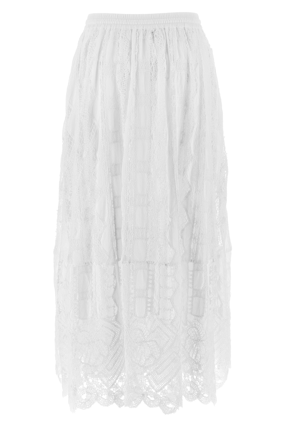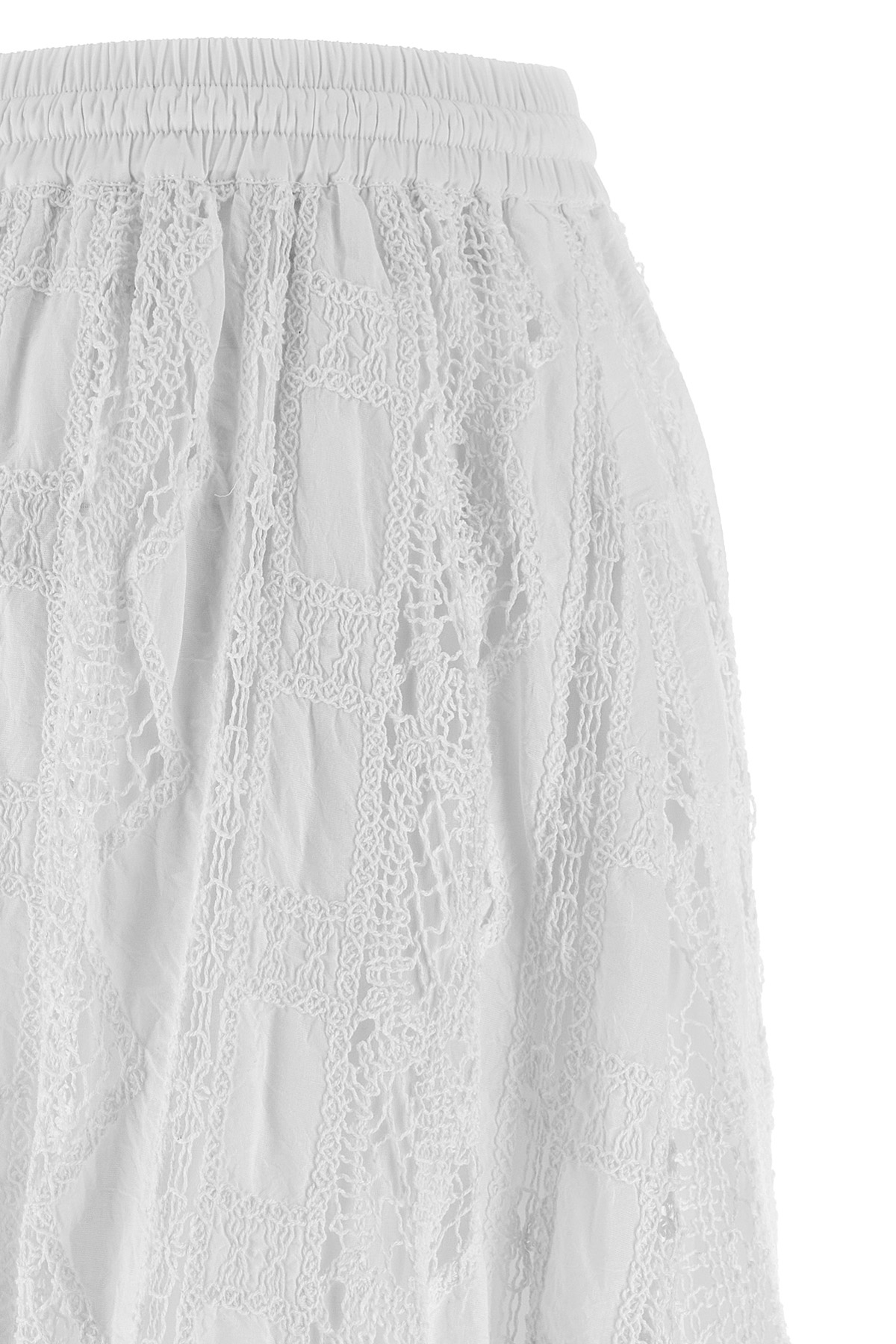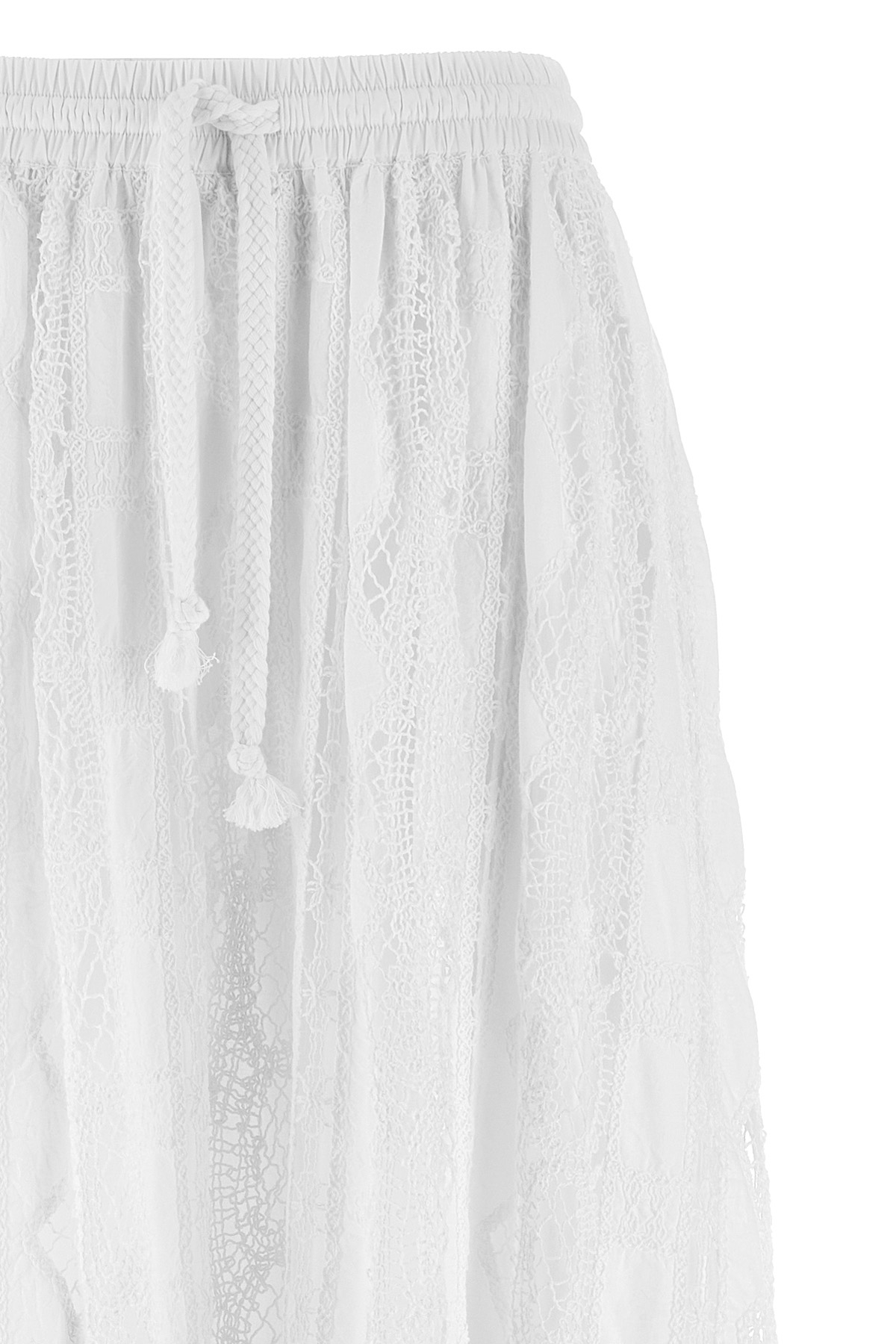 Long sangallo skirt with macrame pattern, adjustable drawstring elastic at the waist, pockets, underskirt.