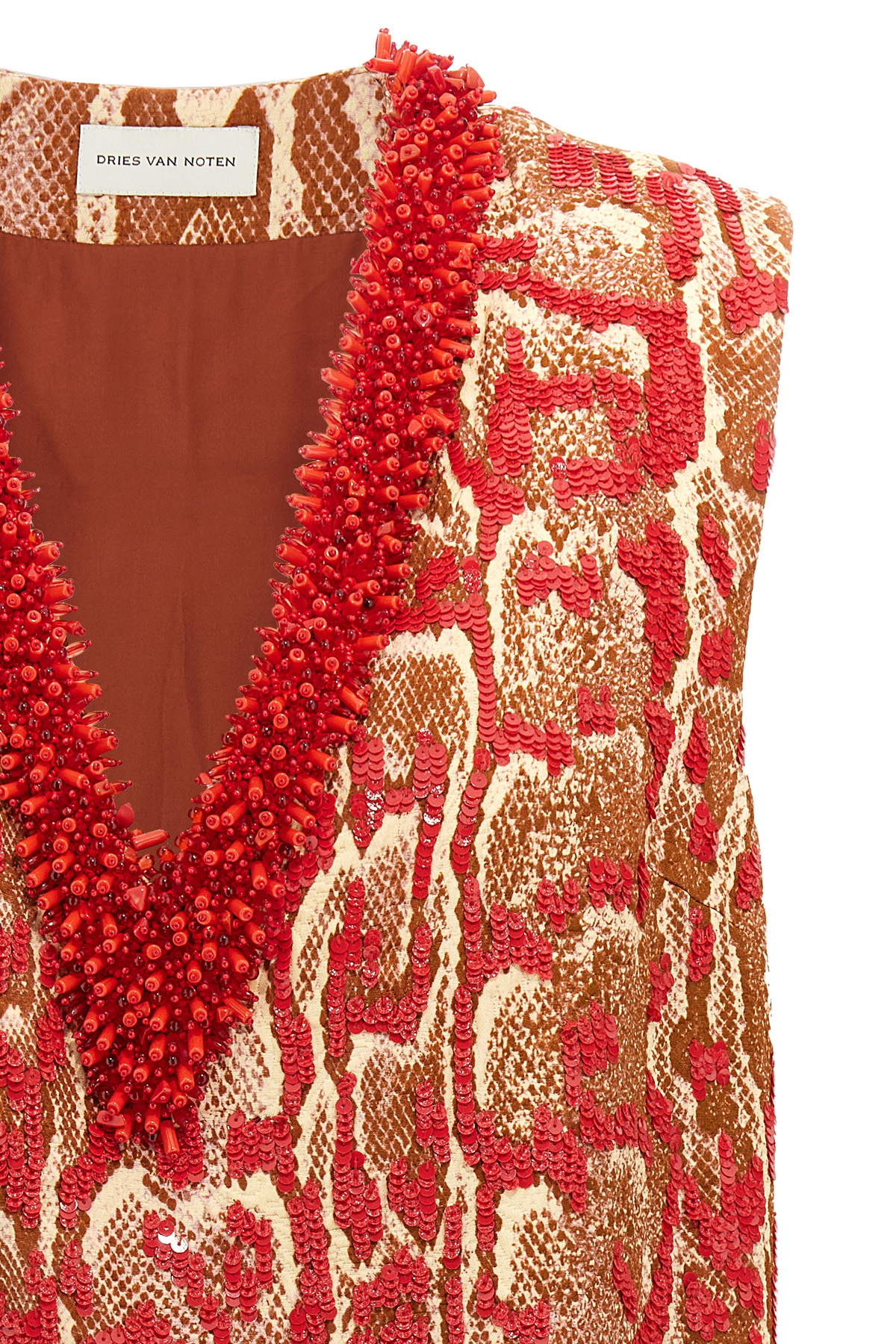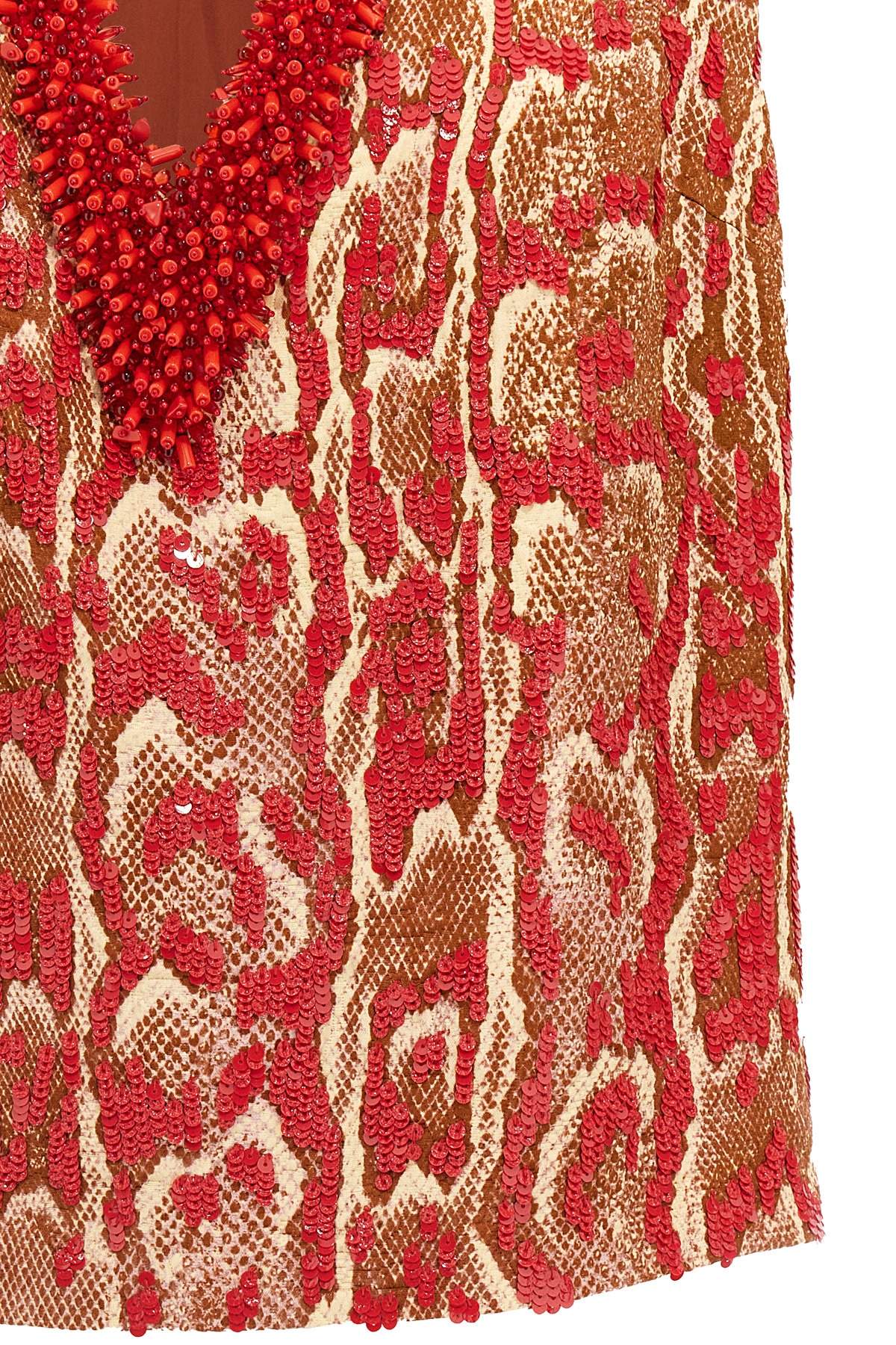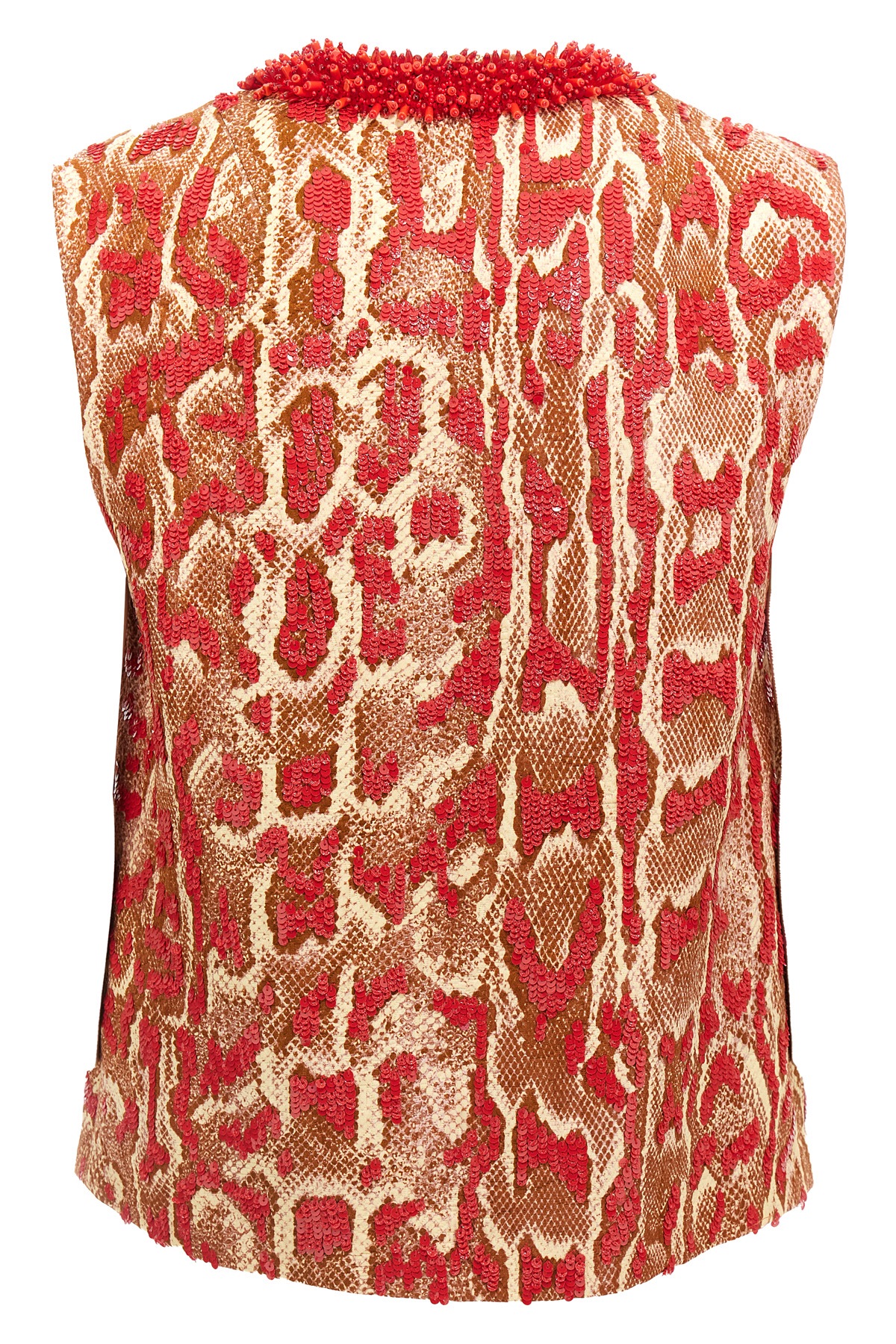 'College' shirt in cotton and viscose blend snake print with all-over sequin application, lining, V-neck with beads application, sleeveless.