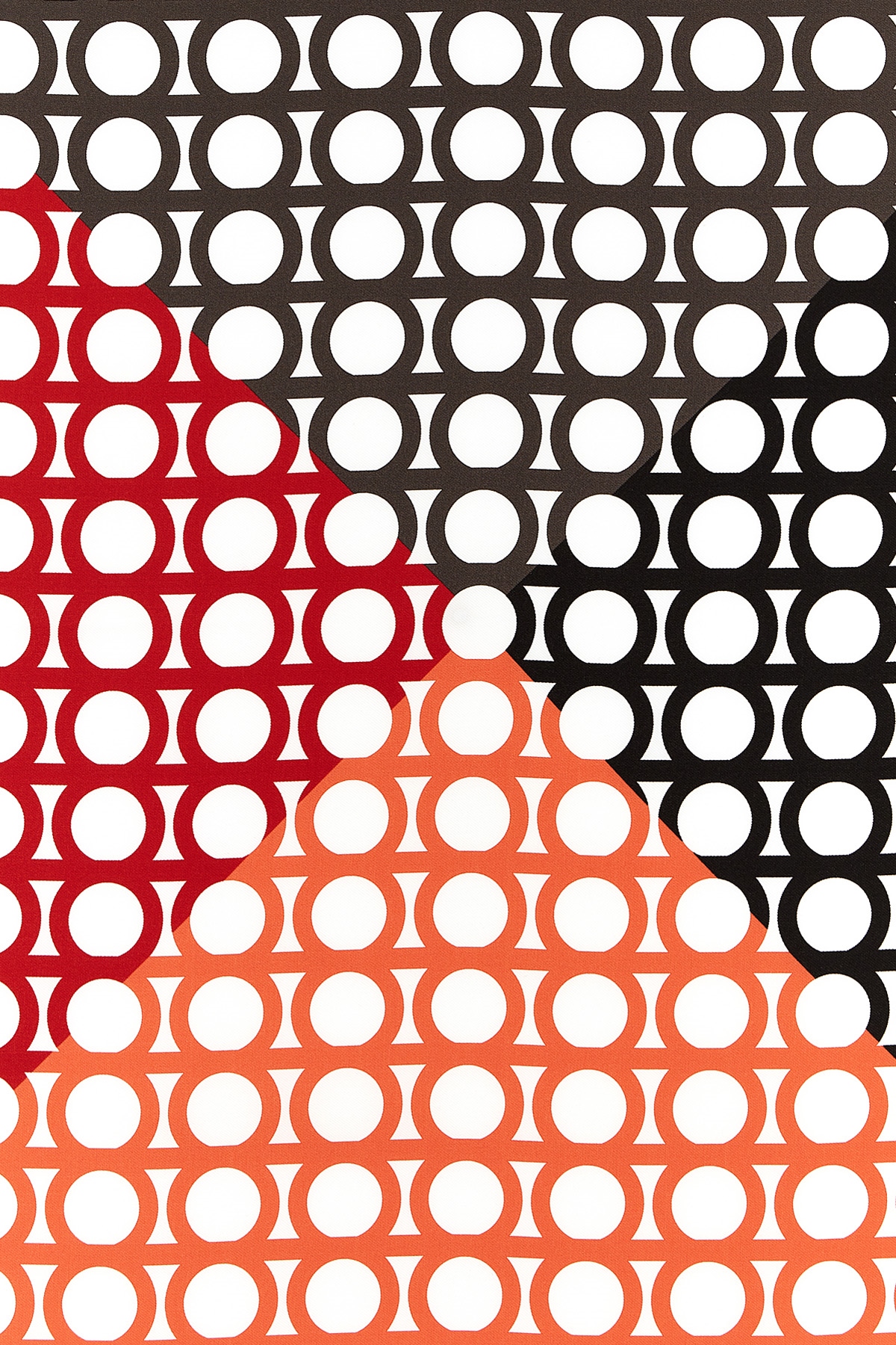 Silk bandana with 'Gancini' pattern, with degrade dimensions divided into four large segments.