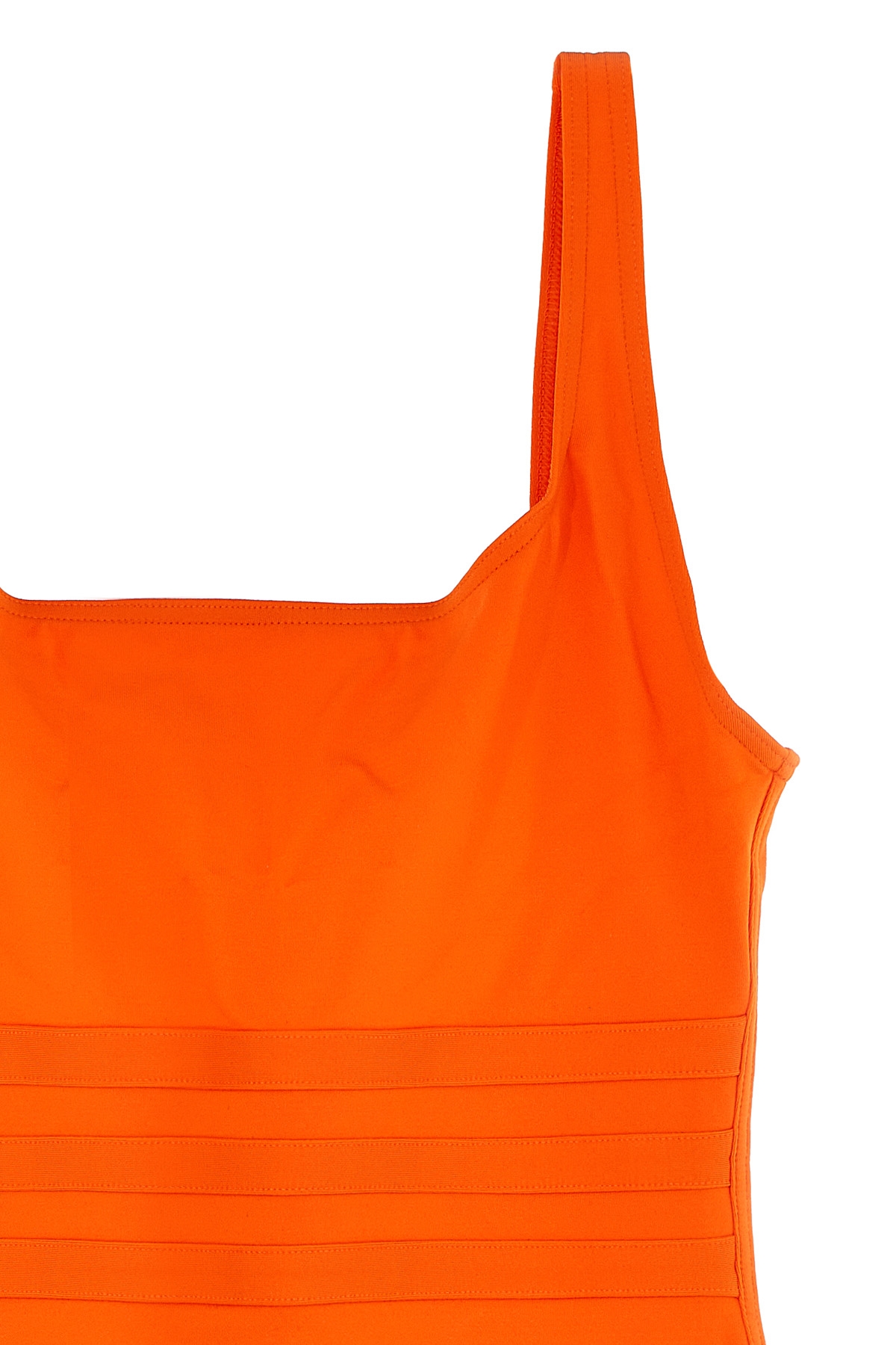 'Asia' one-piece swimsuit in Peau Douce* fabric with wide straps, square neckline at the front, round neckline at the back, and bands at the waist to define the silhouette.