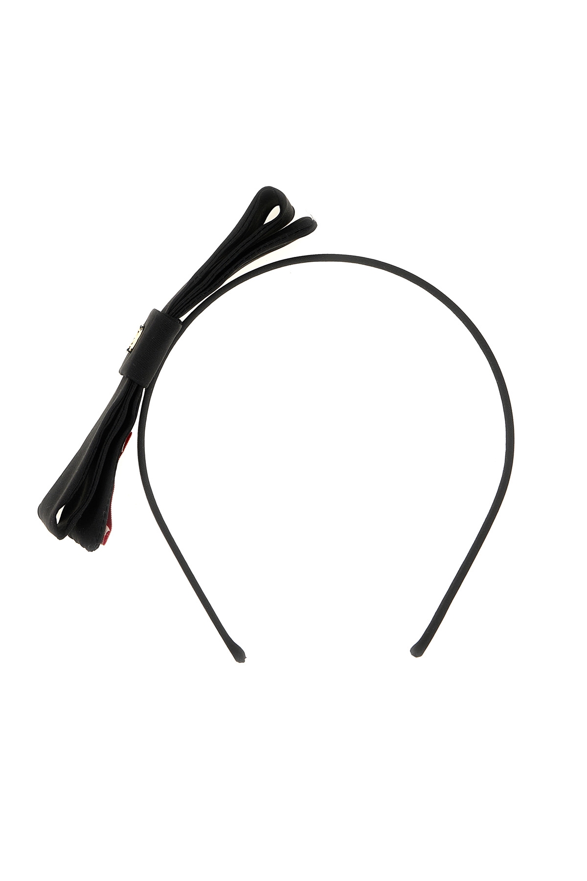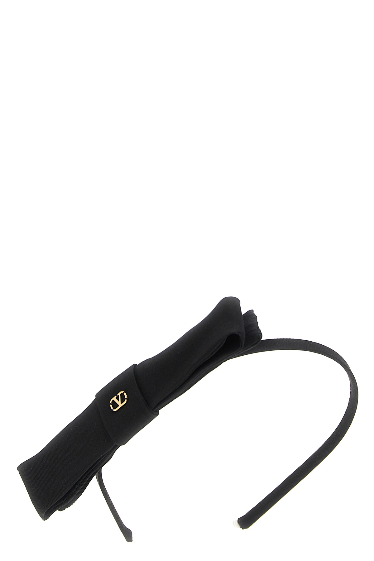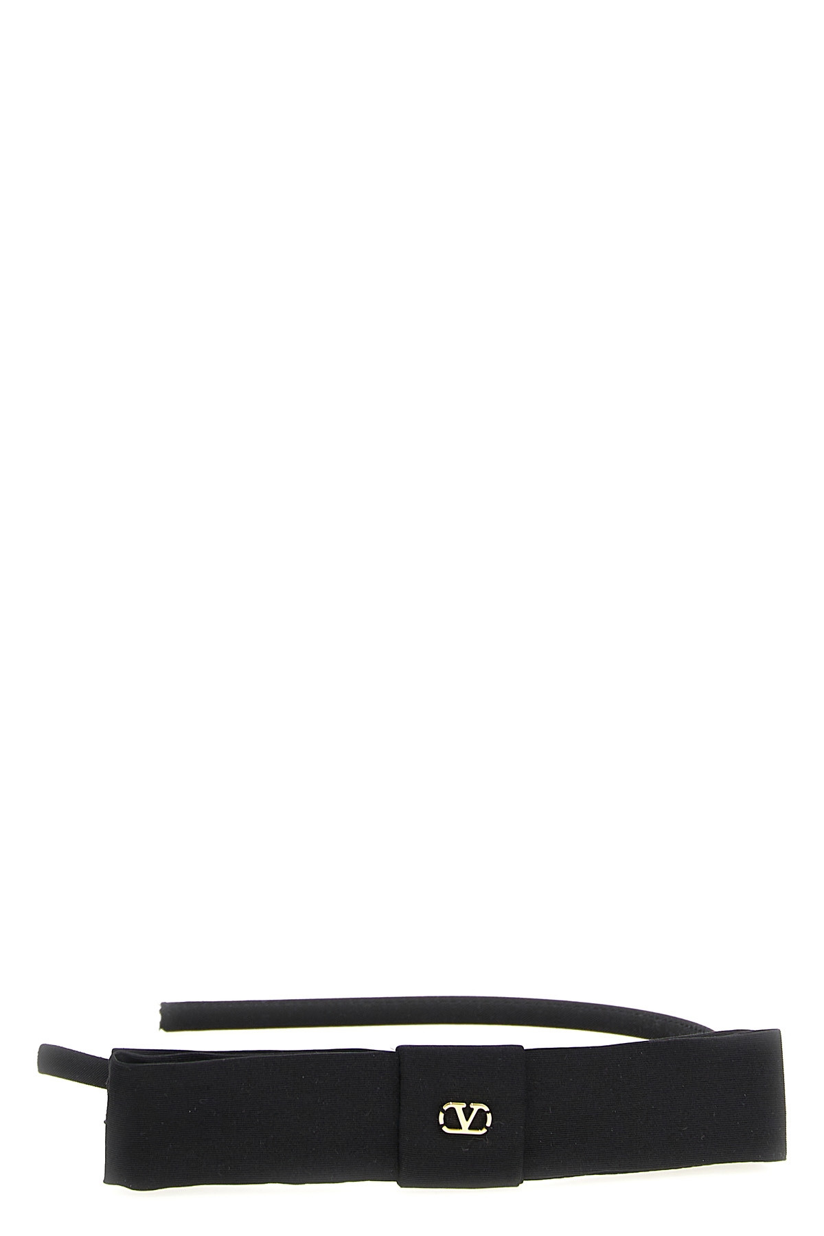 Silk headband with bow and VLogo Signature metallic antiqued effect applied.