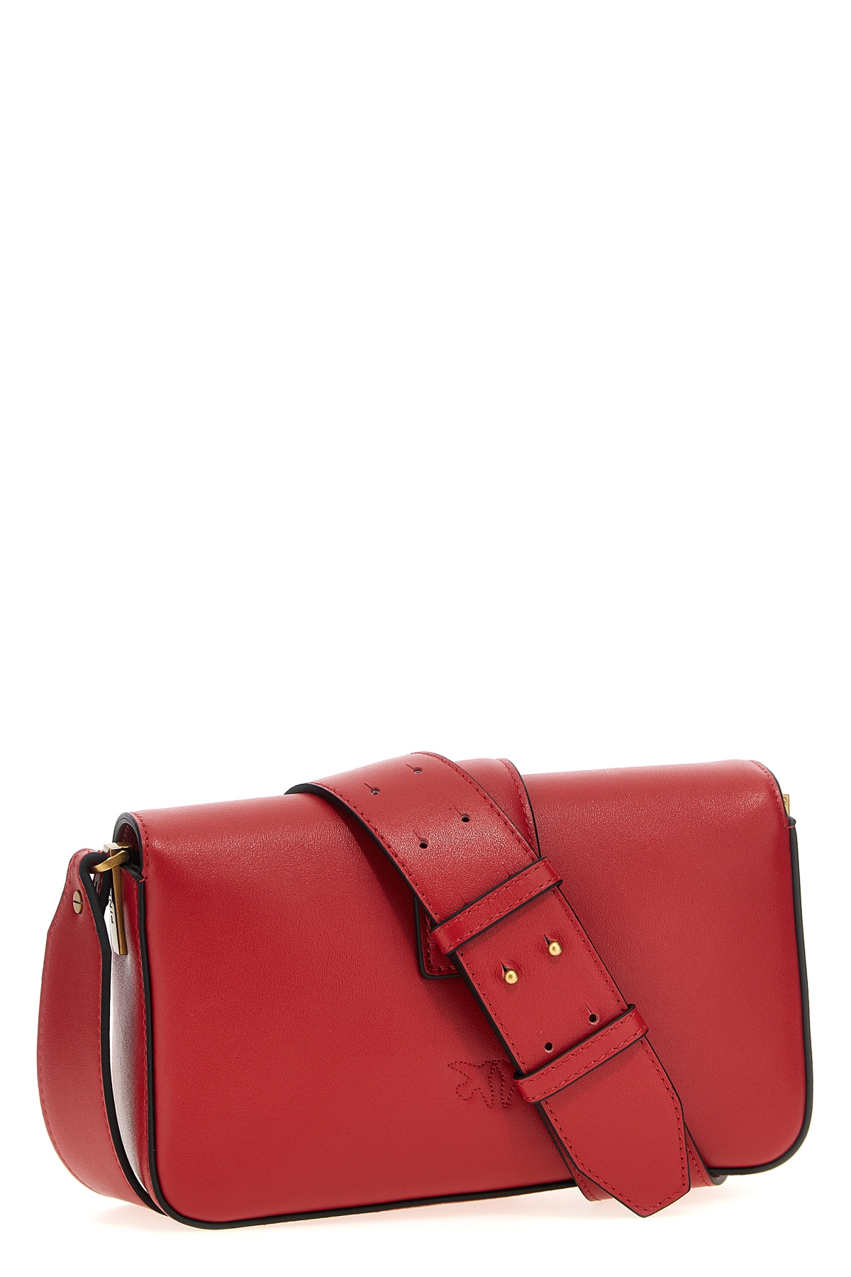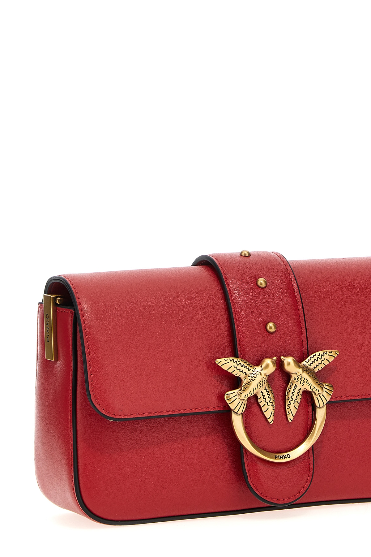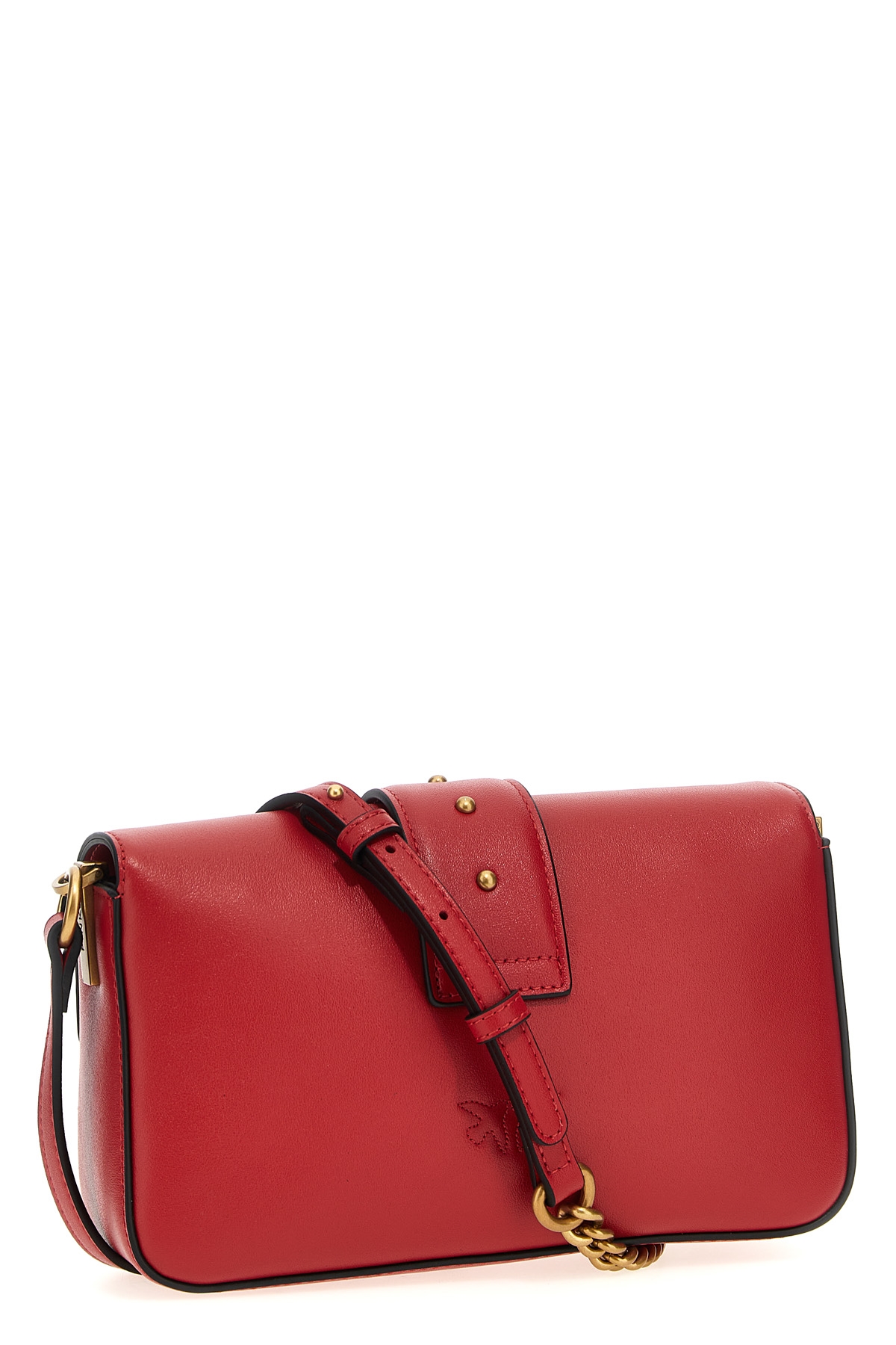 'Love One Mini' smooth leather crossbody bag, magnetic flap closure with metal logo hardware, removable shoulder strap.