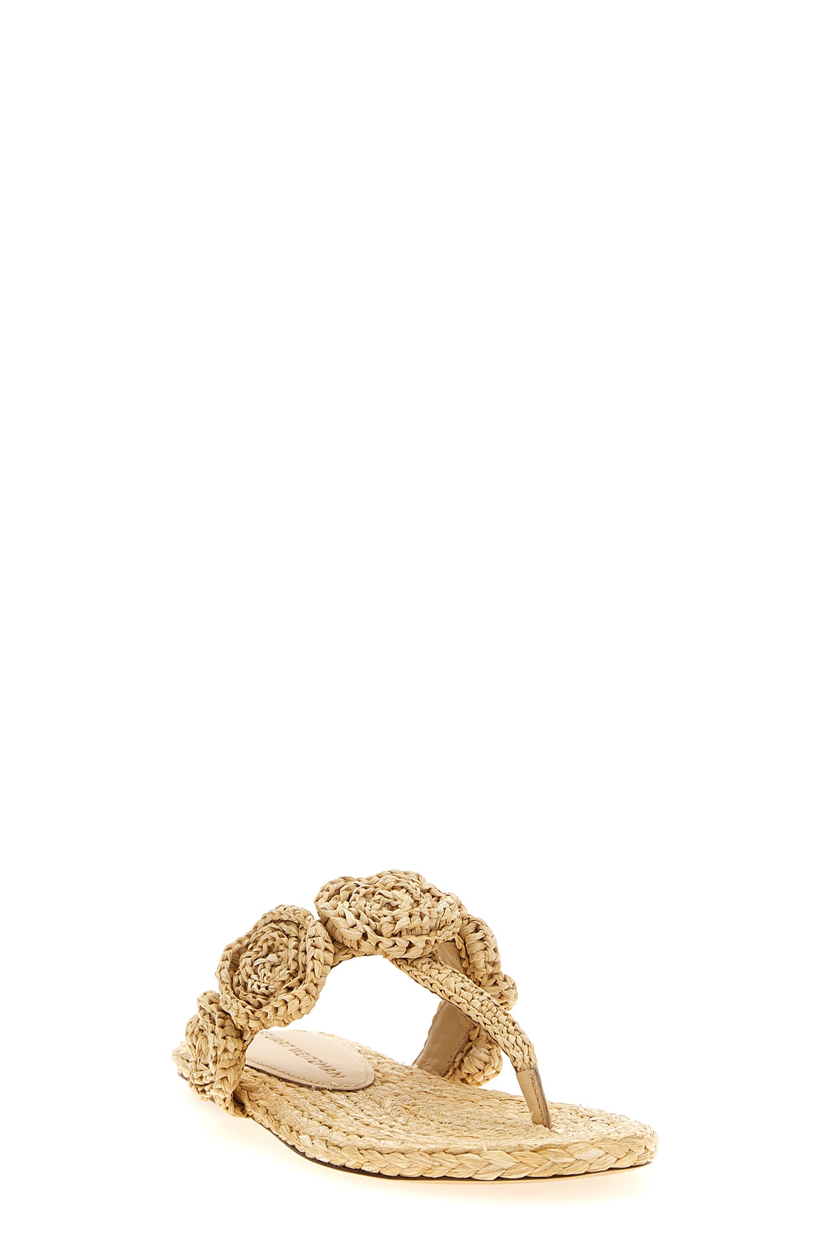 'Magnolia' raffia slides, flip-flops model, leather sole with rubber heel.