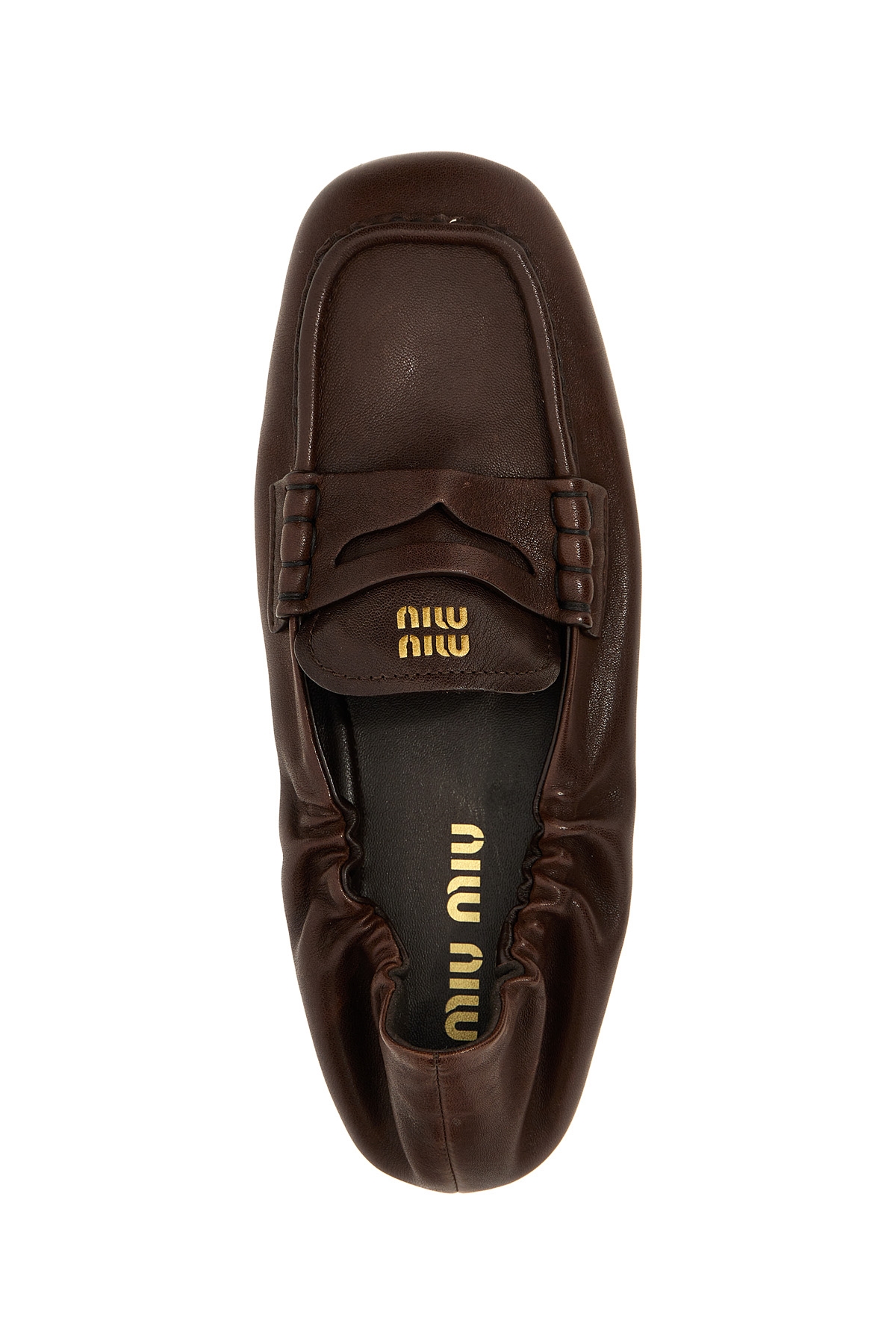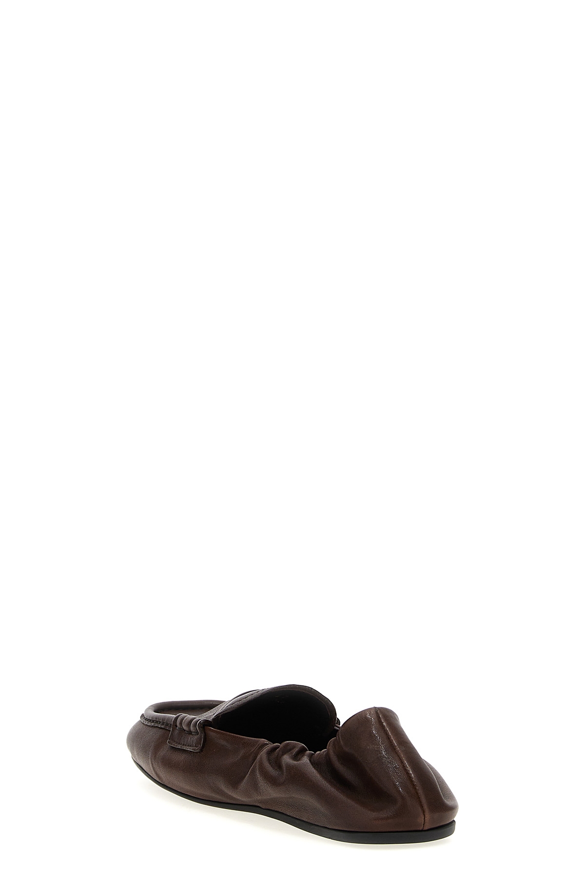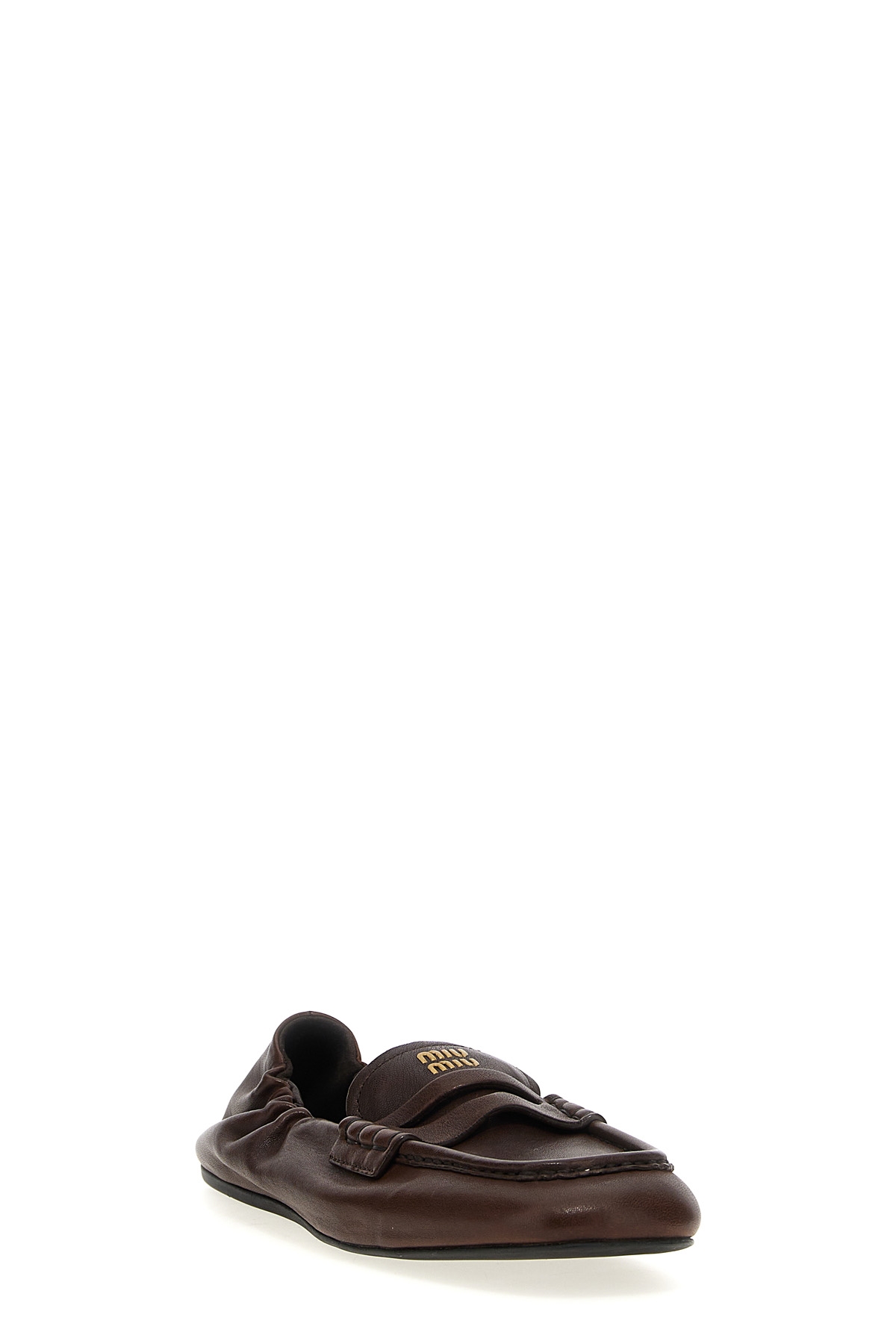 'Ruches' vintage effect leather loafers with embossed logo on the front, elastic back, rubber sole.