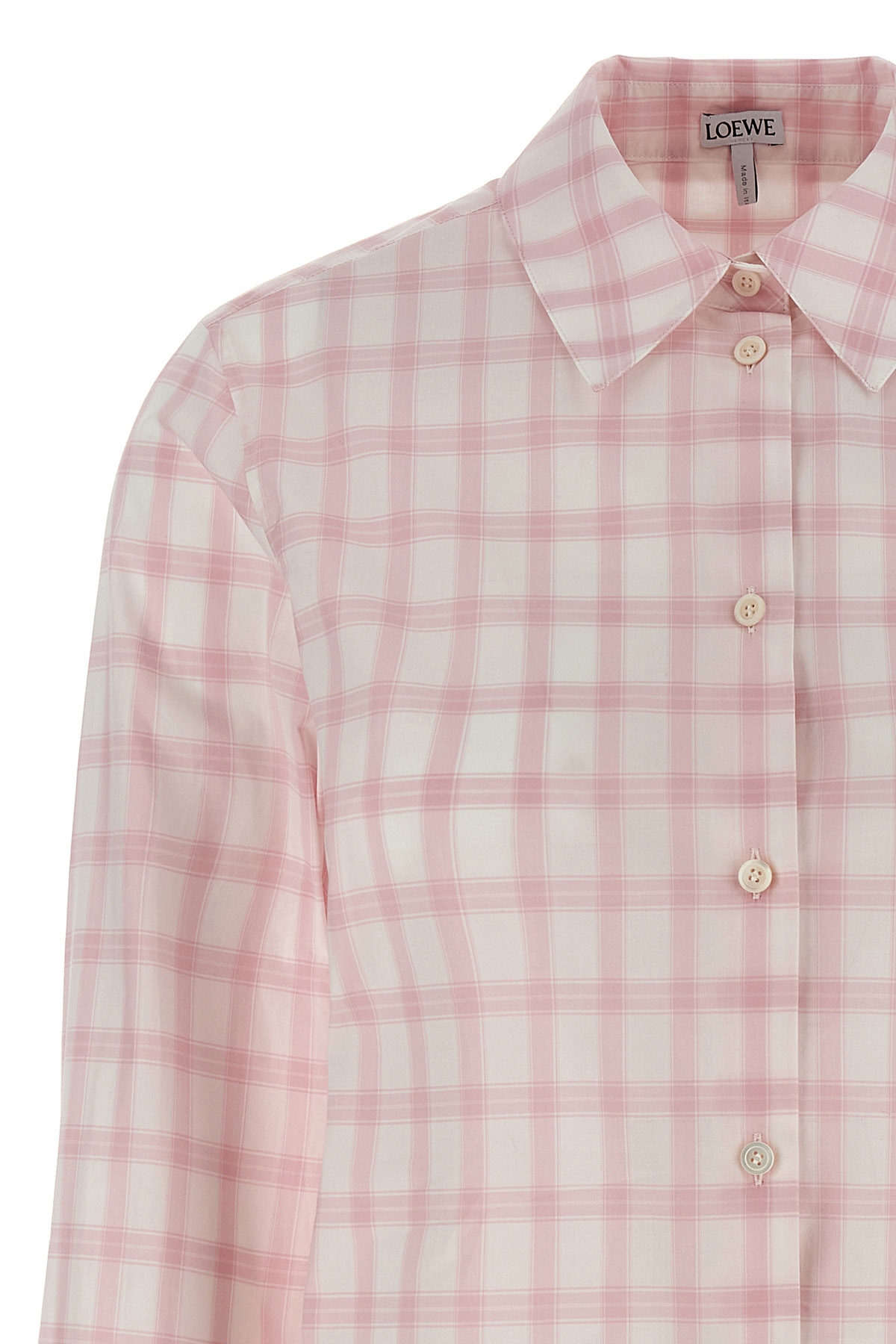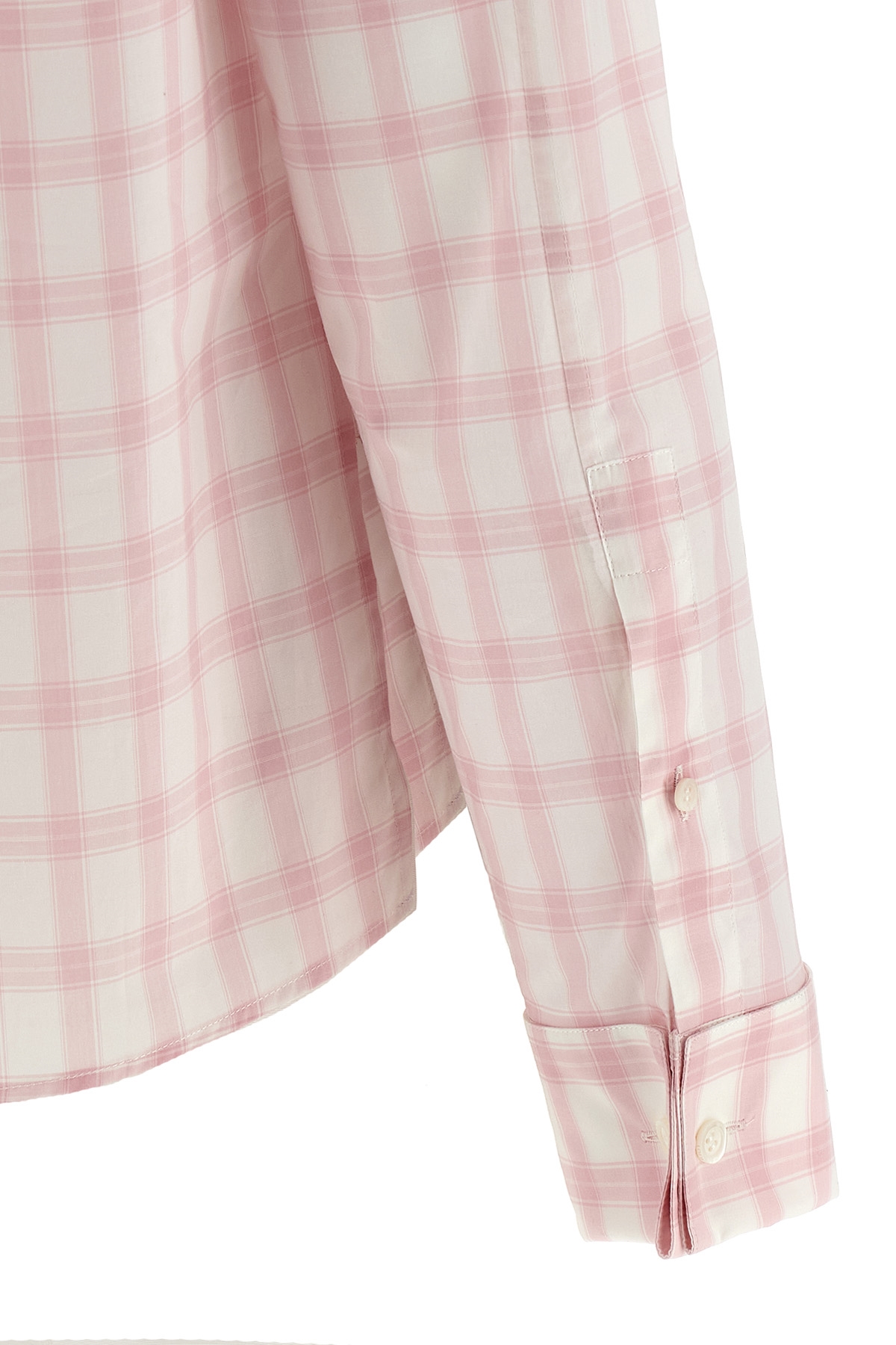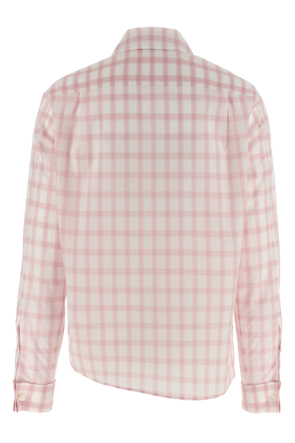 Light jacquard cotton check shirt with tone-on-tone Anagram embroidery and front button closure, long sleeves with cufflinks, and asymmetrical hem with side split.