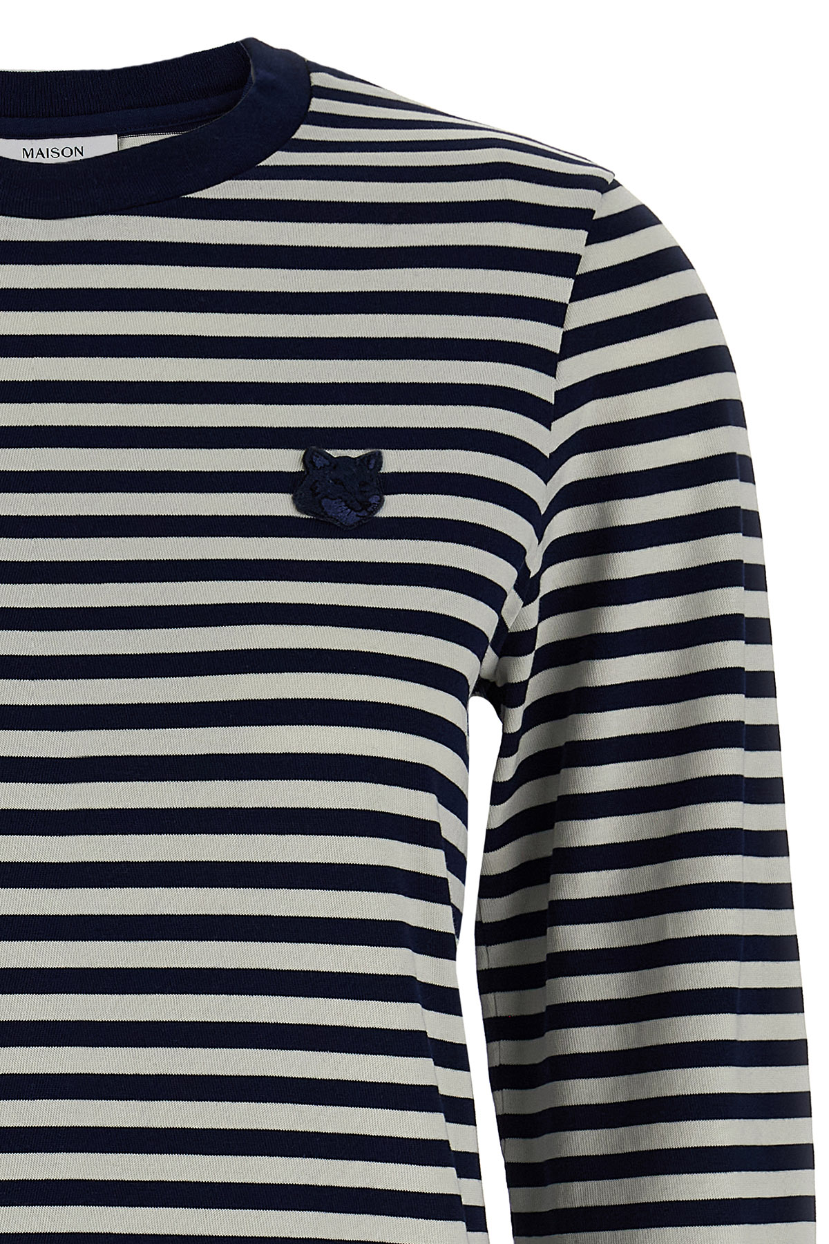 Striped cotton sweater, front 'Bold Fox Head' patch, crew neck, long sleeves.