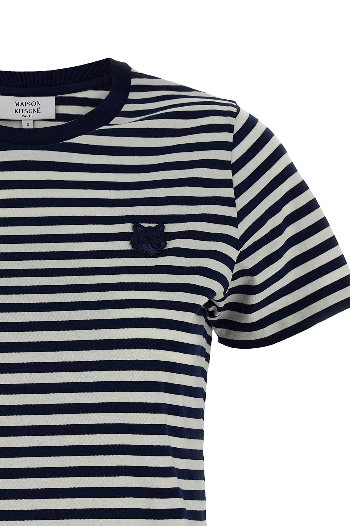 Striped cotton jersey t-shirt, front 'Bold Fox Head' patch, crop style, crew neck, short sleeves.