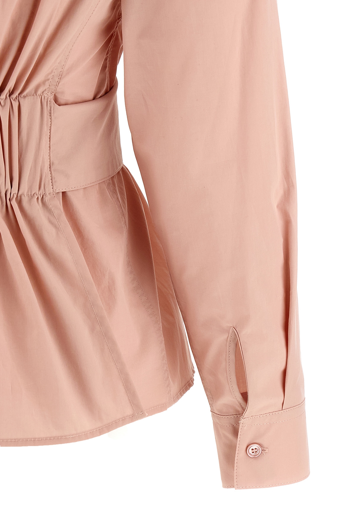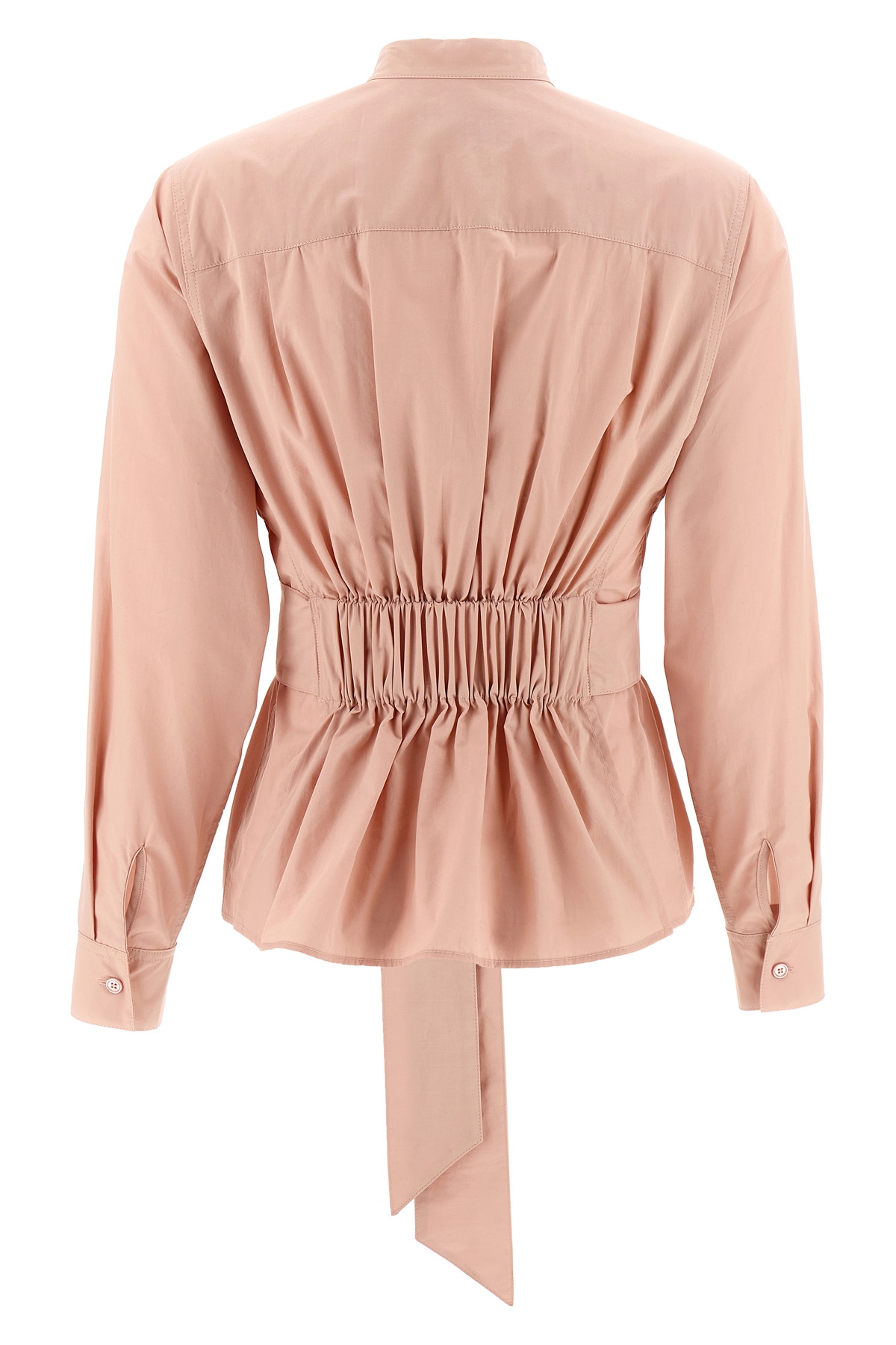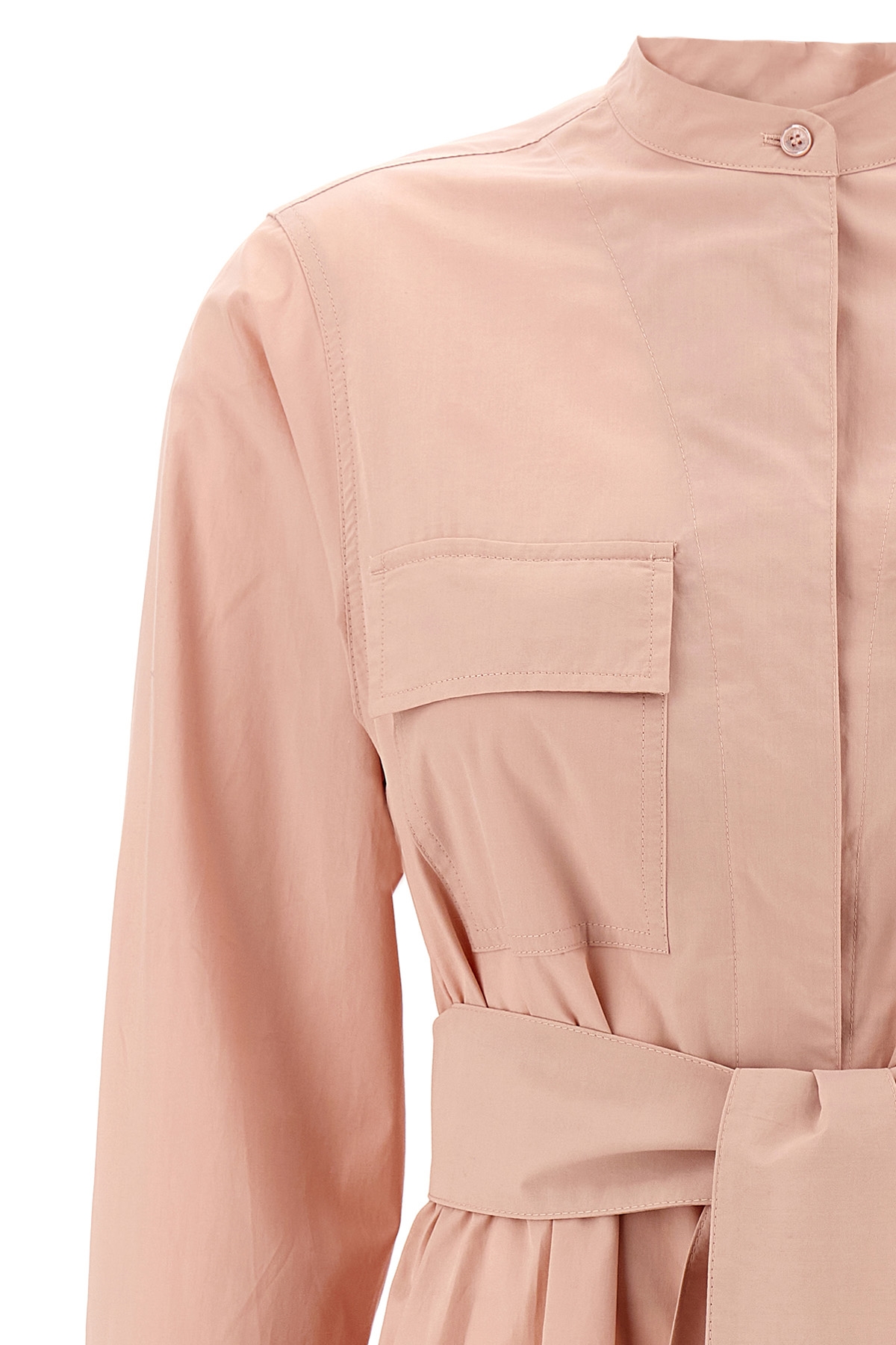 'Artu1234' pure cotton poplin jacket with shirt style with mandarin collar, concealed front button closure, back inlaid elastic with belt to tie at the waist, pockets, long sleeves with cuffs.