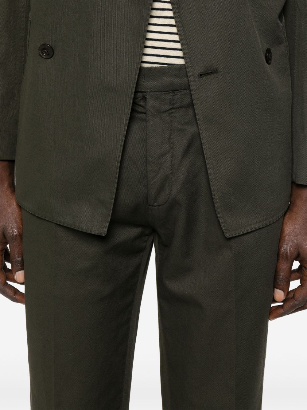 olive green concealed front button, hook and zip fastening chest welt pocket two side patch pockets belt loops