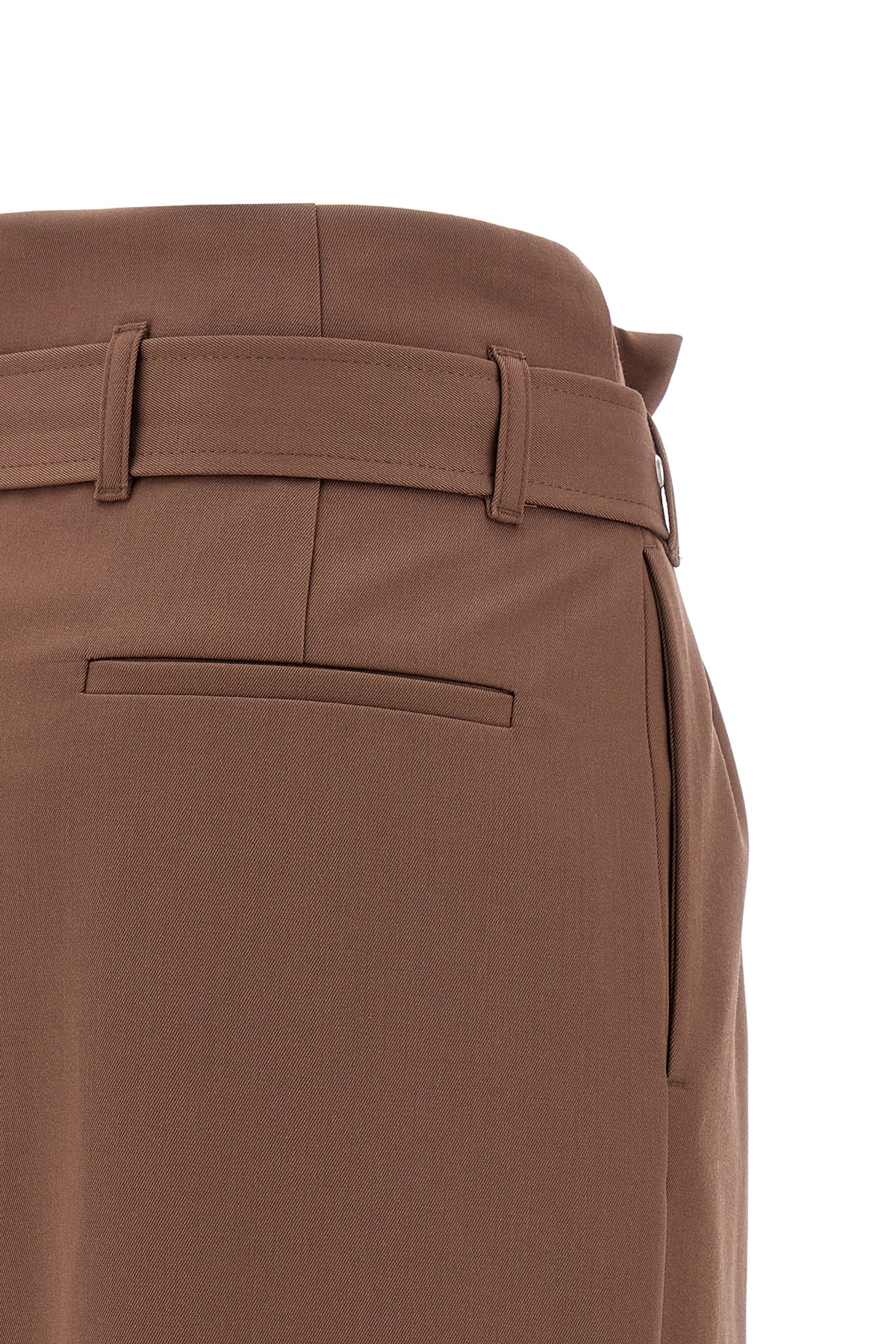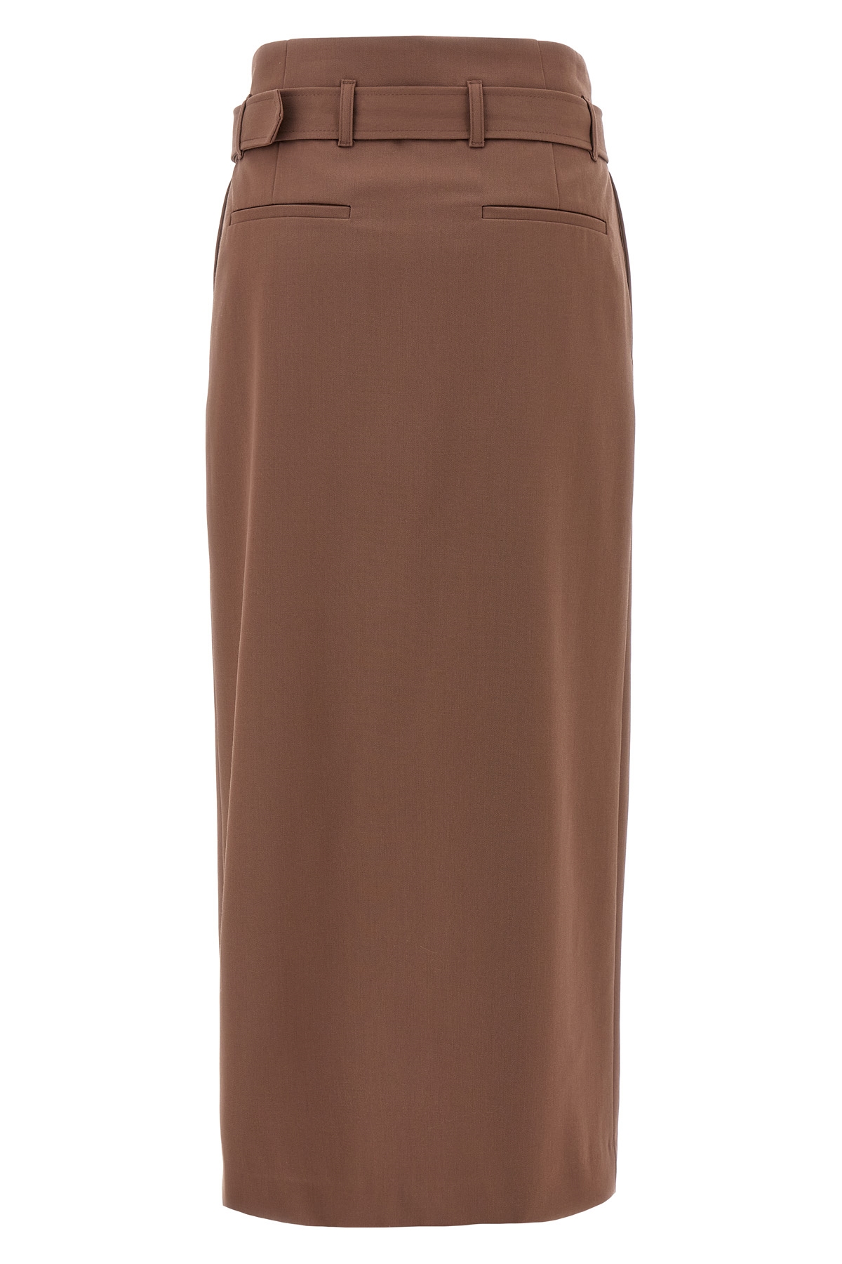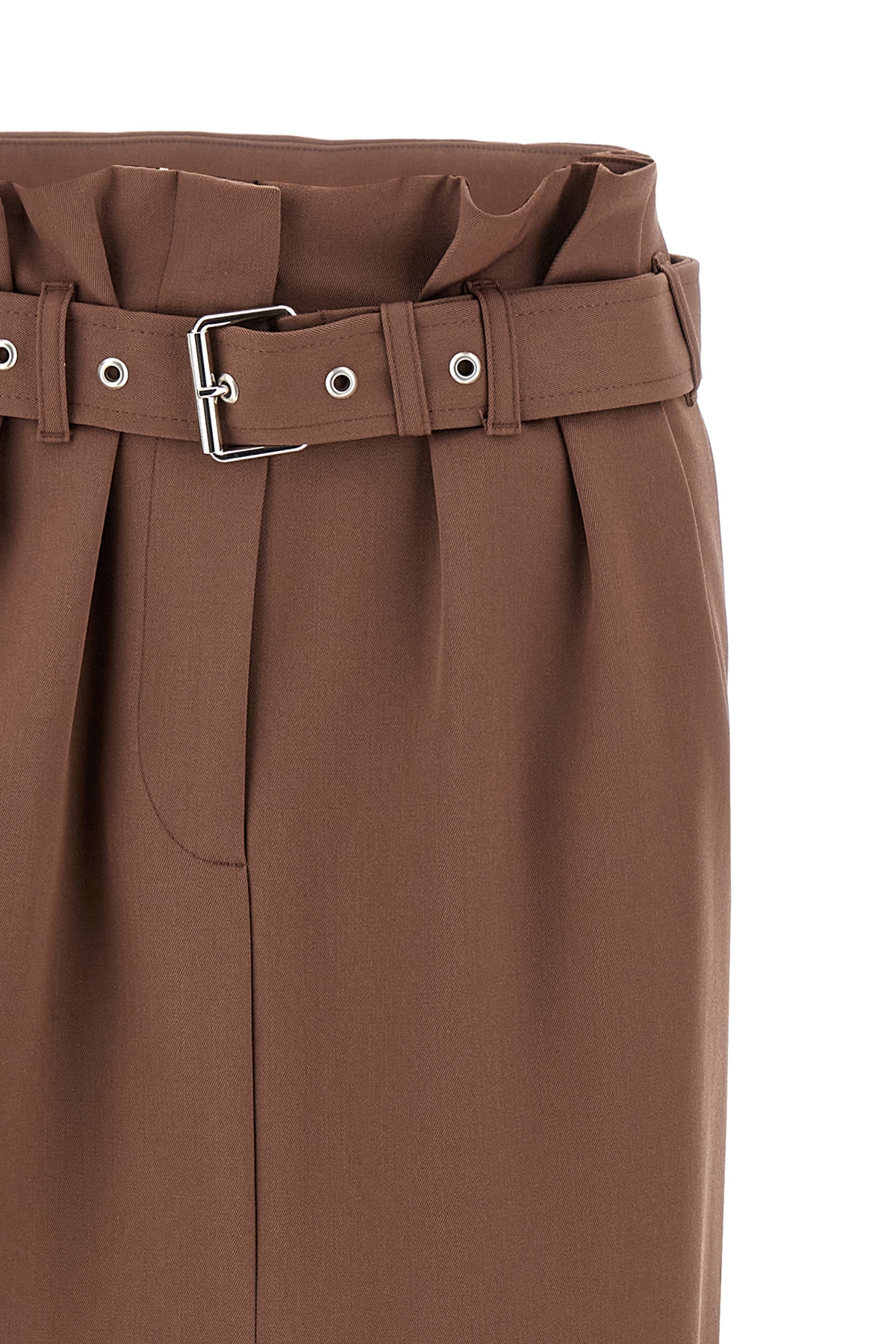 Seaches' wool midi skirt, front ruffled pleats, lining, high waist style, front zip and hook closure, removable belt, pockets, front split.