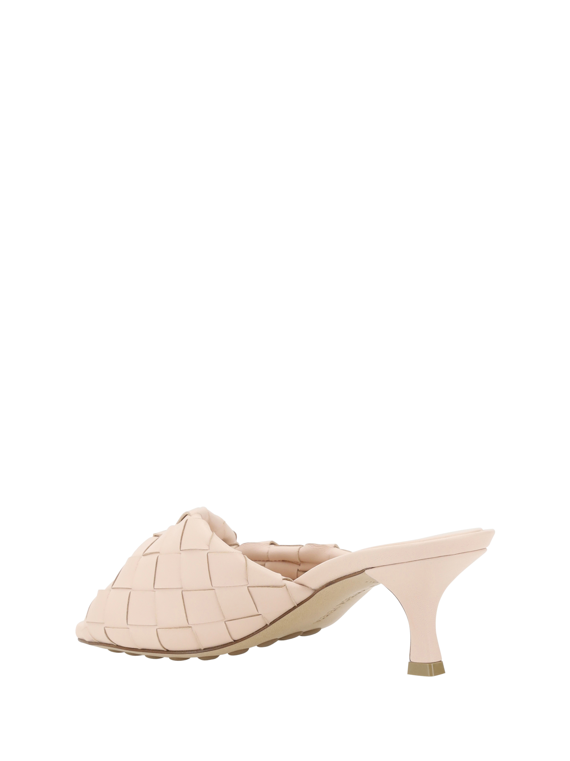 Calfskin Sandals by Bottega Veneta featuring an open front toned toe front band with the brands iconic intrecciato weave leather stiletto heel and contrasting logoed insole