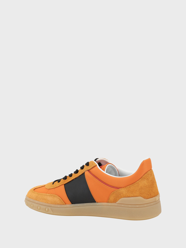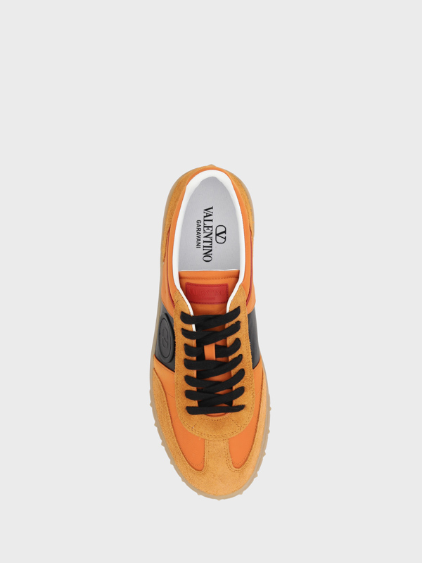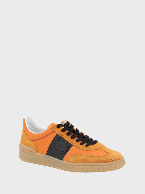 Valentino Garavanis leather Sneakers feature a round toe and a front laceup closure Suede details add a touch of elegance while the contrasting slanted band on the outer side panel is embellished with the brands signature embossed VLogo The flat rubber sole is decorated with the brands iconic monogram and embossed Rockstud studs an additional detail that lends a bold and sophisticated touch to the design A pair of sneakers with a unique and refined look ideal for a modern and trendy outfit