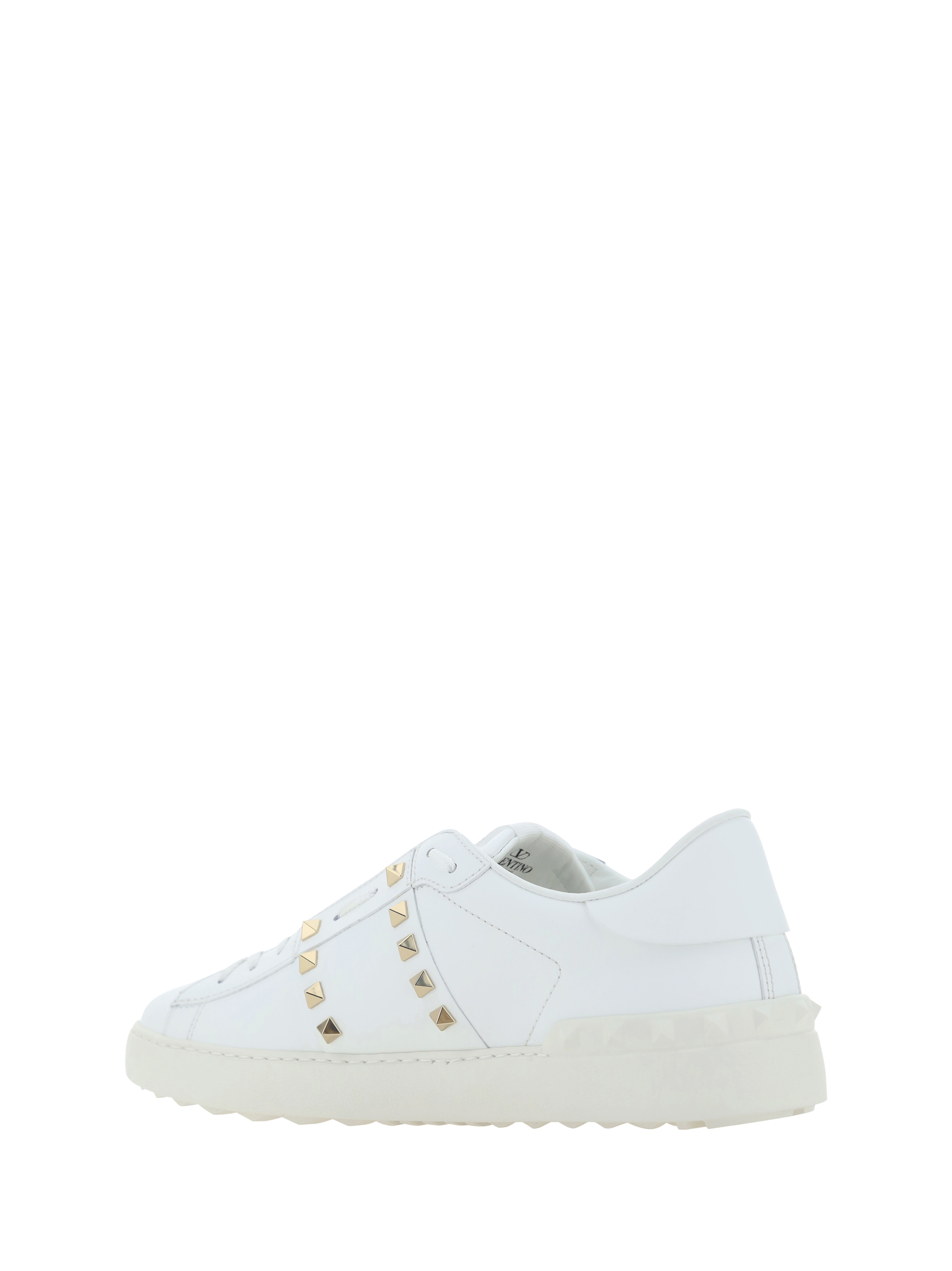 Leather Rockstud Sneakers by Valentin Garavani slipon style flat sole with iconic studs on heel and perimeter of upper iconic contrasting monogram on tongue iconic studs applied on side panels logoed insole