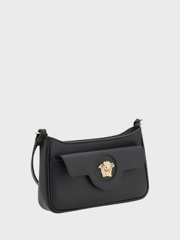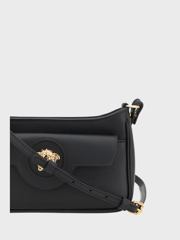 Versaces Mini Medusa Leather Shoulder Bag is a sophisticated and practical accessory perfect for those seeking elegance and functionality Made of highquality leather it features an adjustable flat strap that allows it to be worn comfortably on the shoulder or crossbody The top zipper closure provides security while the front pocket with magnetic flap is embellished with the iconic golden Medusa logo a distinctive symbol of the brand Inside the single compartment offers enough space for your essentials making it ideal for a chic and versatile everyday look