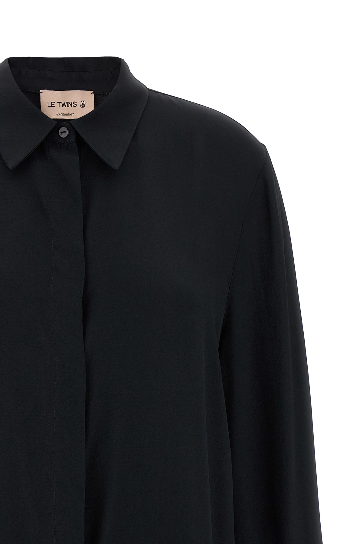 'Moreno' silk blend shirt with concealed front button closure, 3/4 wide sleeves with contrast asymmetrical cuffs.