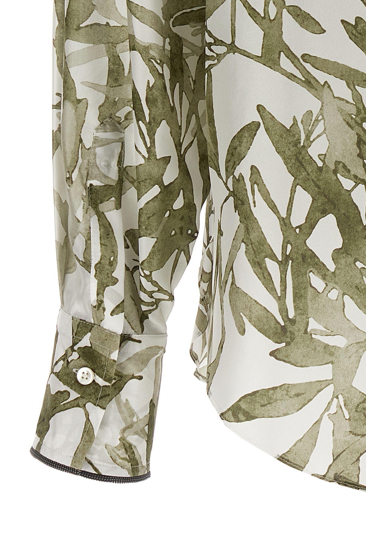 Floral print silk shirt with button closure, long sleeves with Monile detail cuffs.
