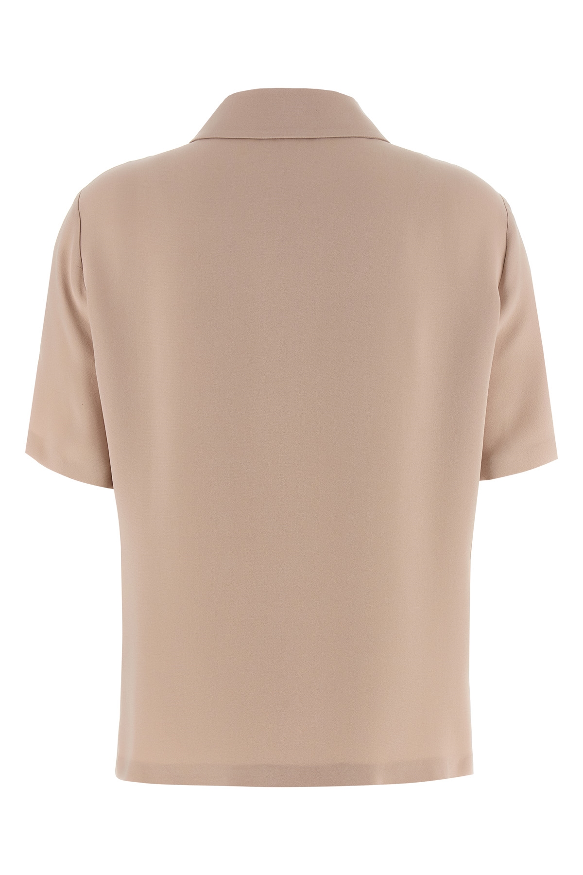 Polo shirt in silk cady with tone-on-tone logo embroidery on the front, collar and buttons, short sleeves, side slits.