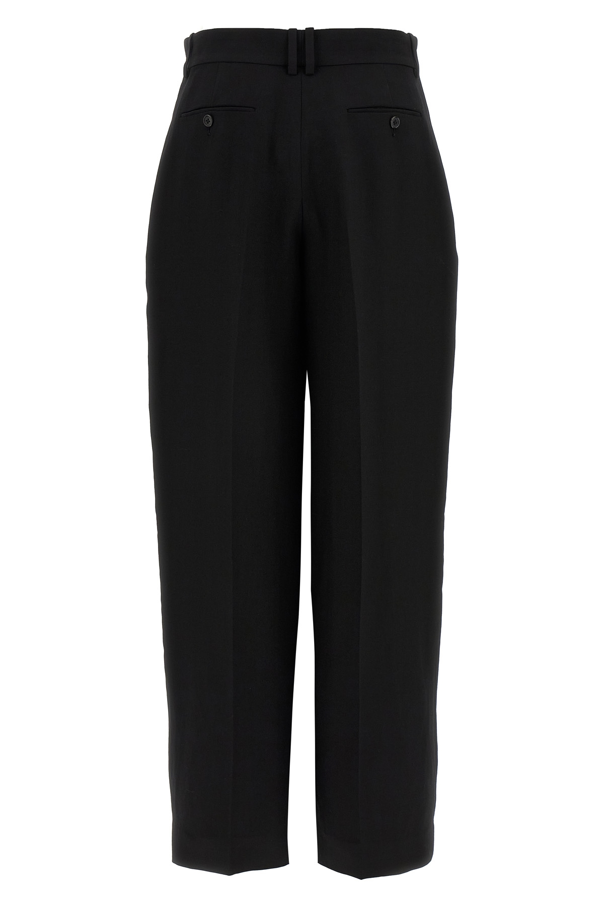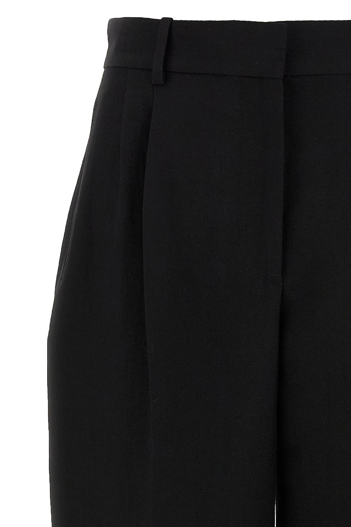 'Lilas' wool and linen trousers, high waist, wide and straight leg, double front pincer, stretched pleat, pockets, zip hook and front button closure.