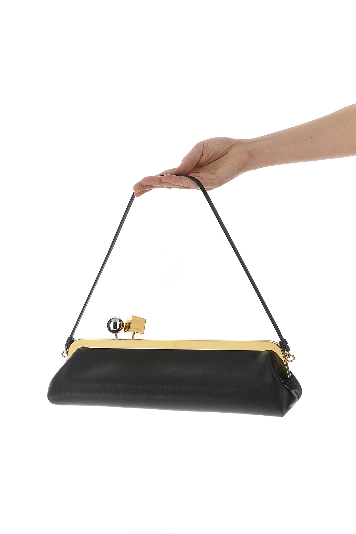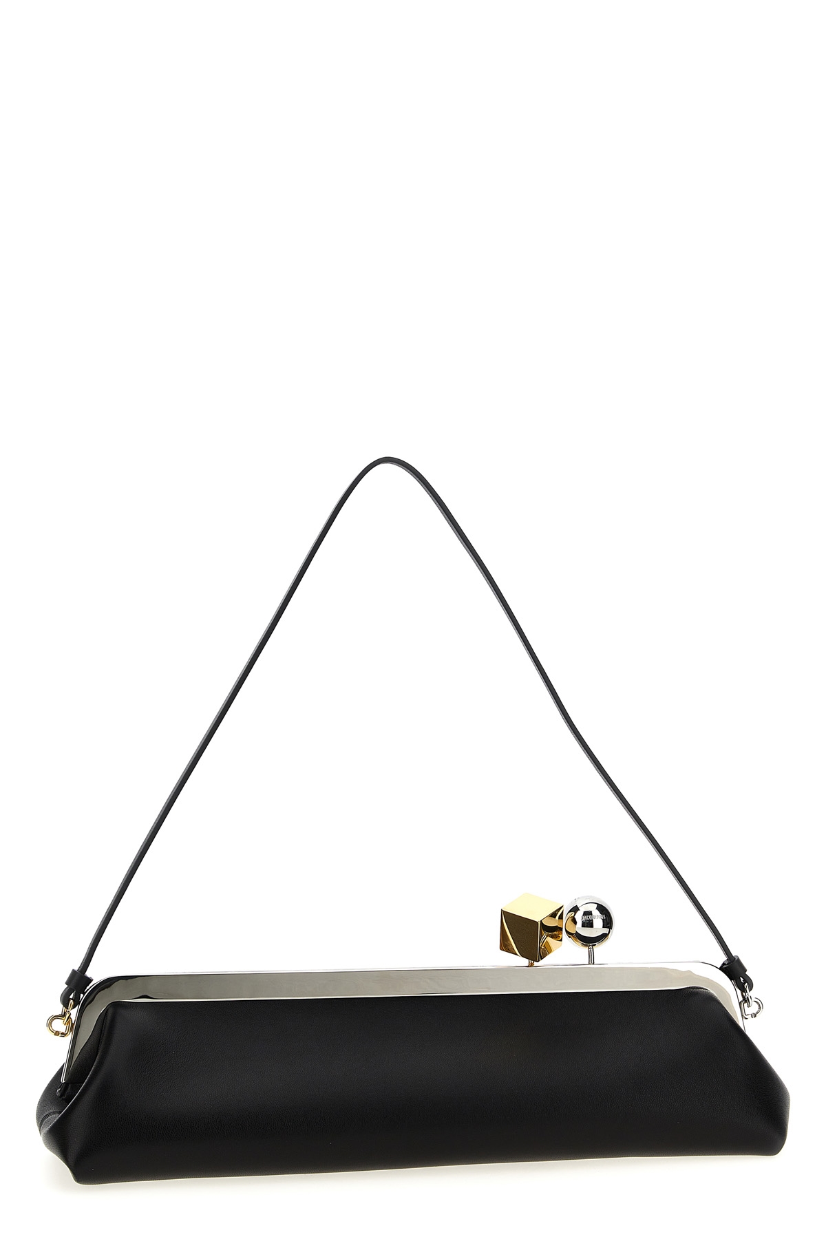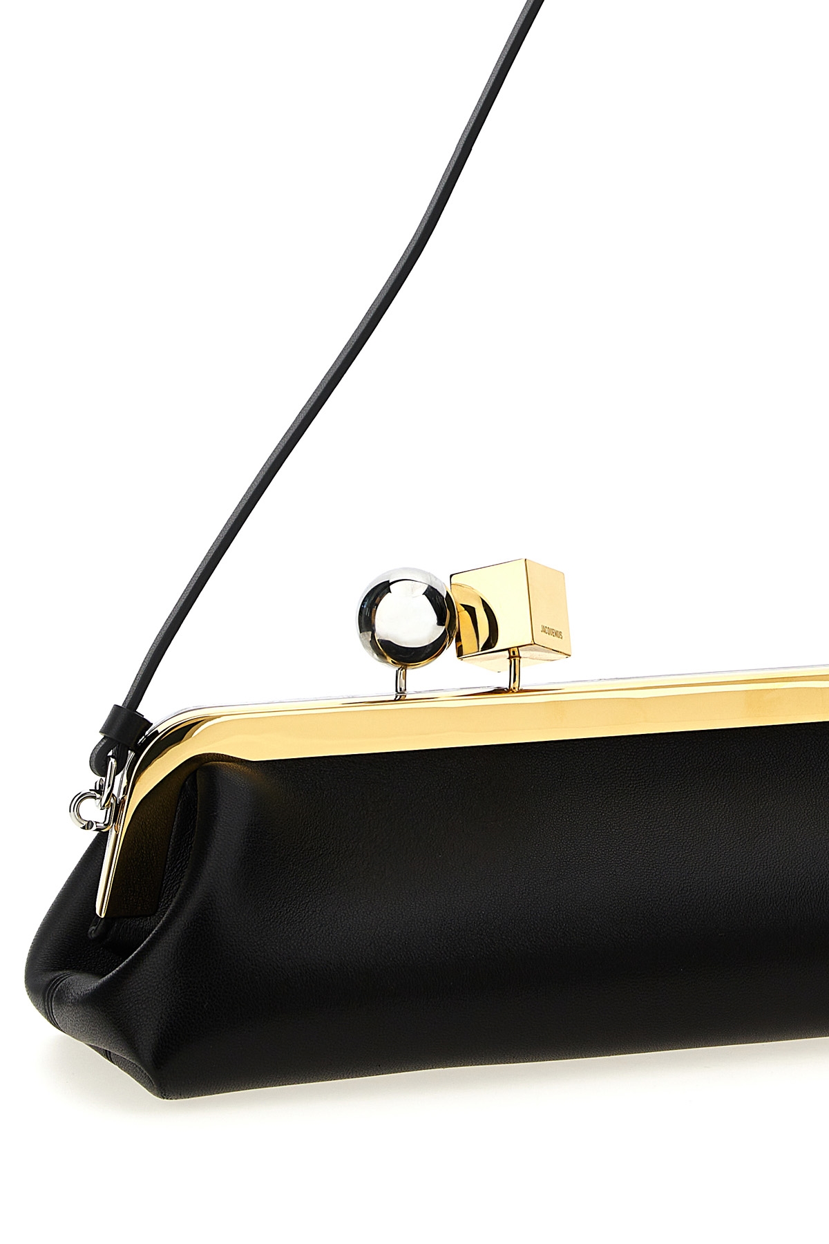 'La Pochette Salon' clutch bag in ultra-soft lambskin leather, magnetic closure, two-tone metal details with sphere and top cube, retractable handle.