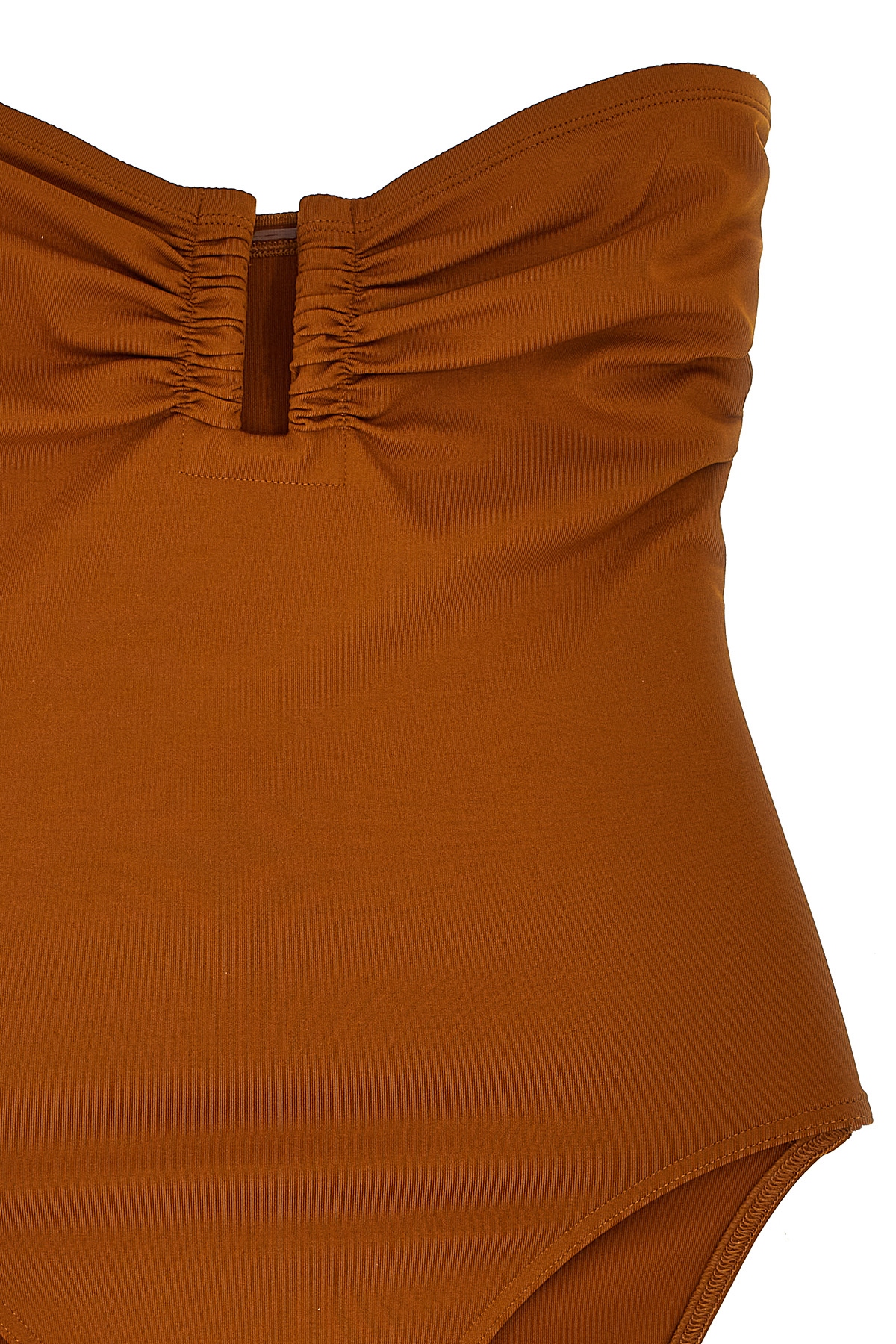 'Cassiopee' Peau Douce* fabric one-piece swimsuit with pleated cups separated by a U-shaped underwire.