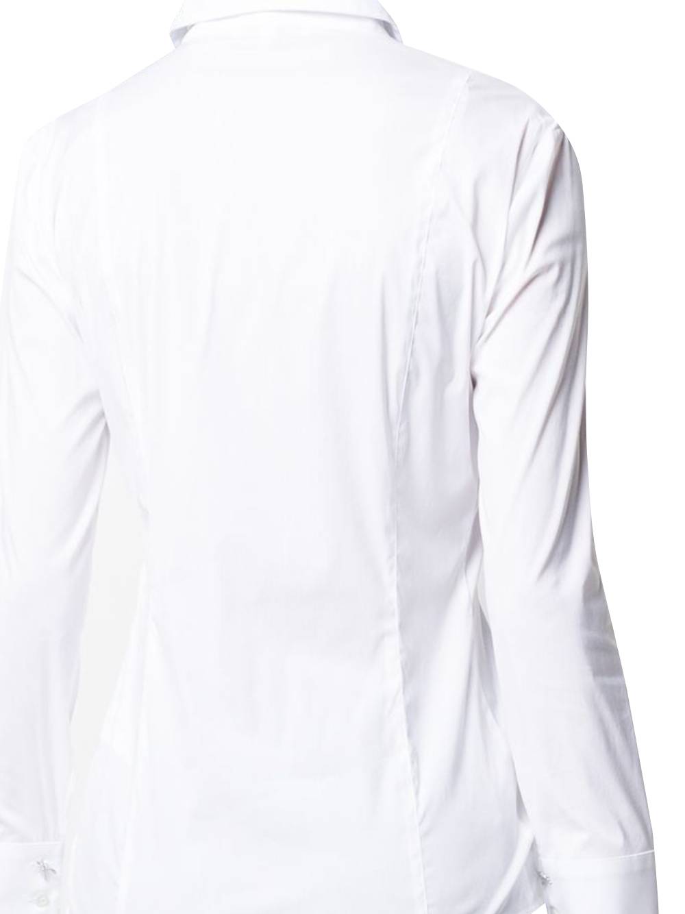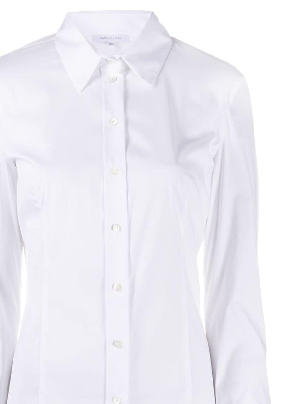 white cotton and polyamideblend classic collar front button fastening long sleeves straight hem