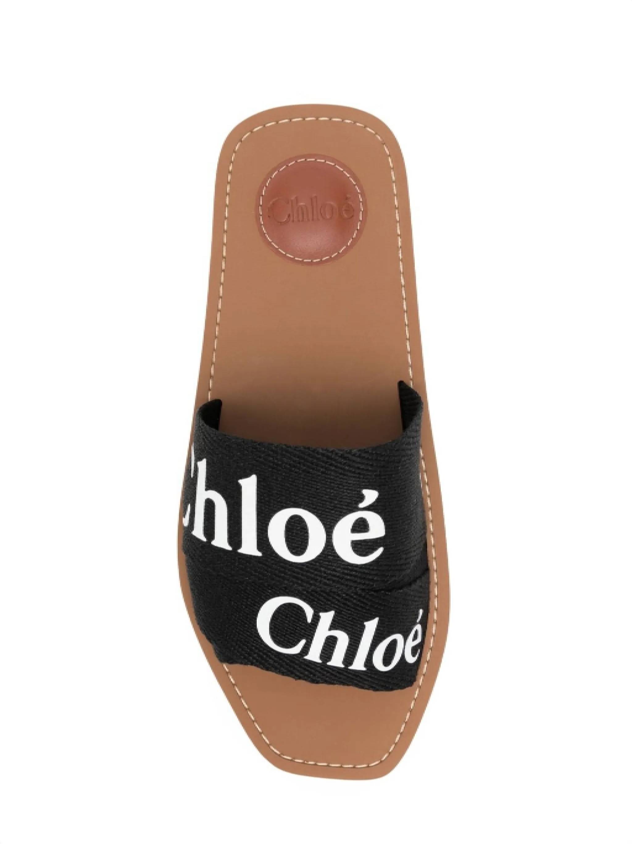 Revisited in linen with a lower environmental impact these Woody flat clogs boast a combination of differently sized ribbons marked by the Chloe logo in strong contrast The whole forms a wide upper that guarantees maximum comfortThe practical slipon design makes the low shoe a musthave for the summer The Maisons emblematic O decorates the insole while the iconic ecru topstitching gives an equestrian character and a playful note to the recycled rubber sole