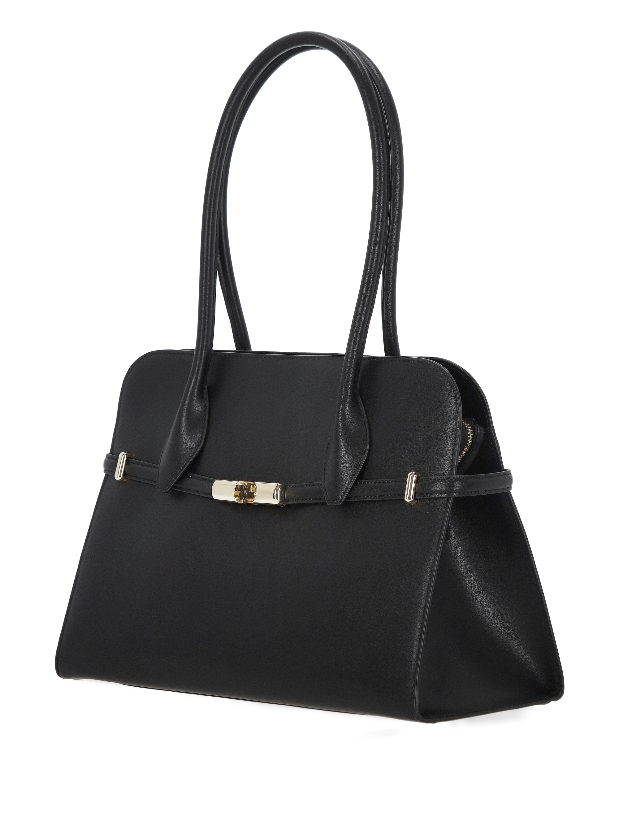 black top zip fastening two rolled top handles metal feet This piece comes complete with a protective dust bag