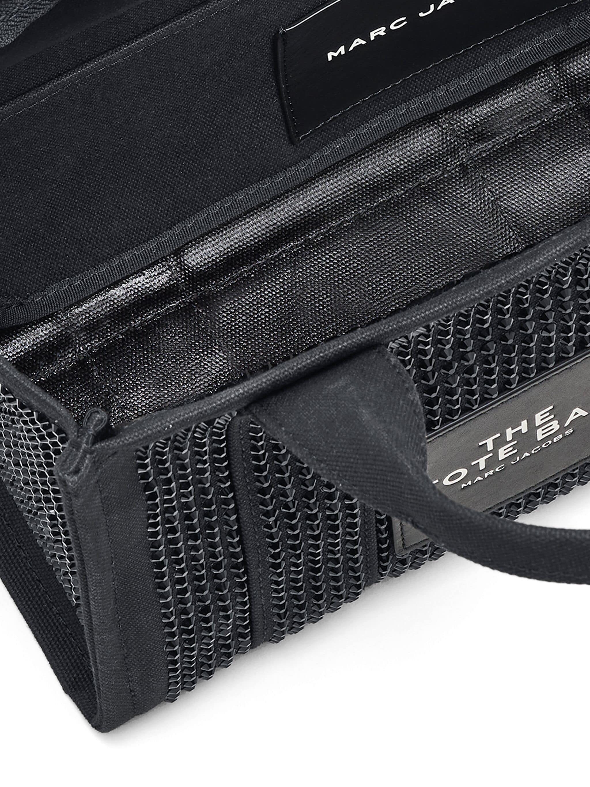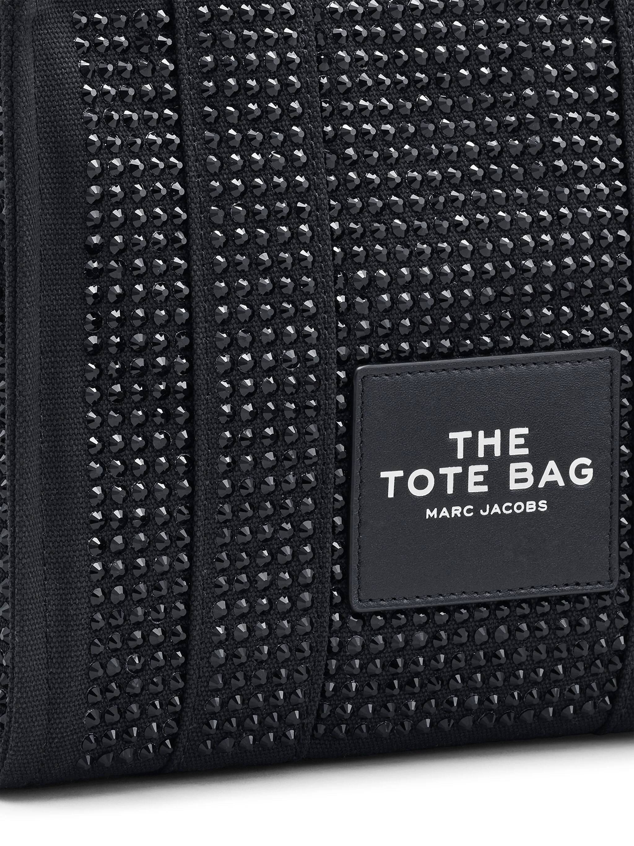 Inspired by archival runway designs this version of our Small Tote is crafted in cotton canvas and adorned with clear crystals for a glistening dimensional finish A chunky top zip closure and one slip pocket make this bag small but mighty?