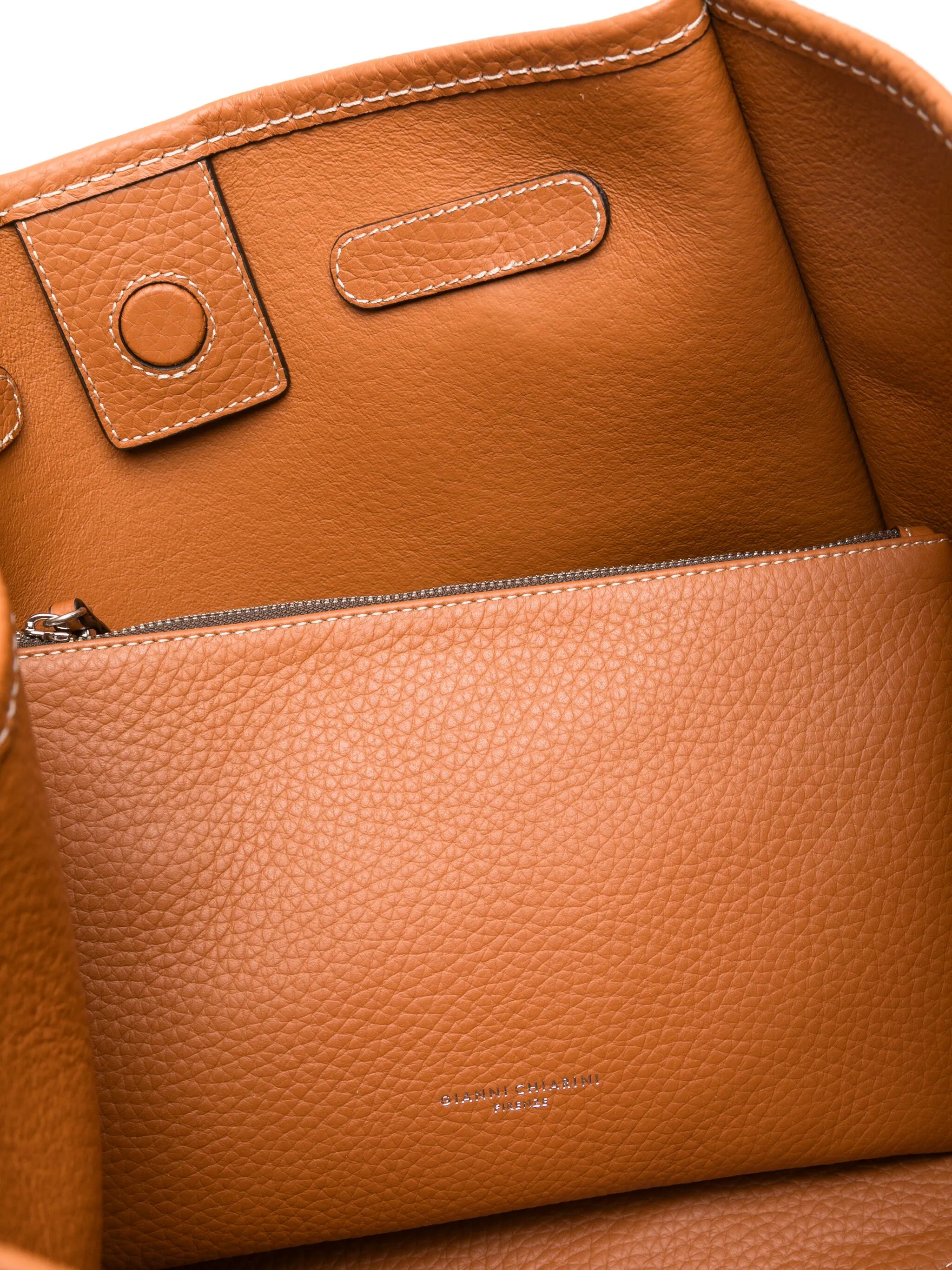 caramel brown concealed magnetic fastening thin shoulder straps removable pouch This piece comes complete with a protective dust bag