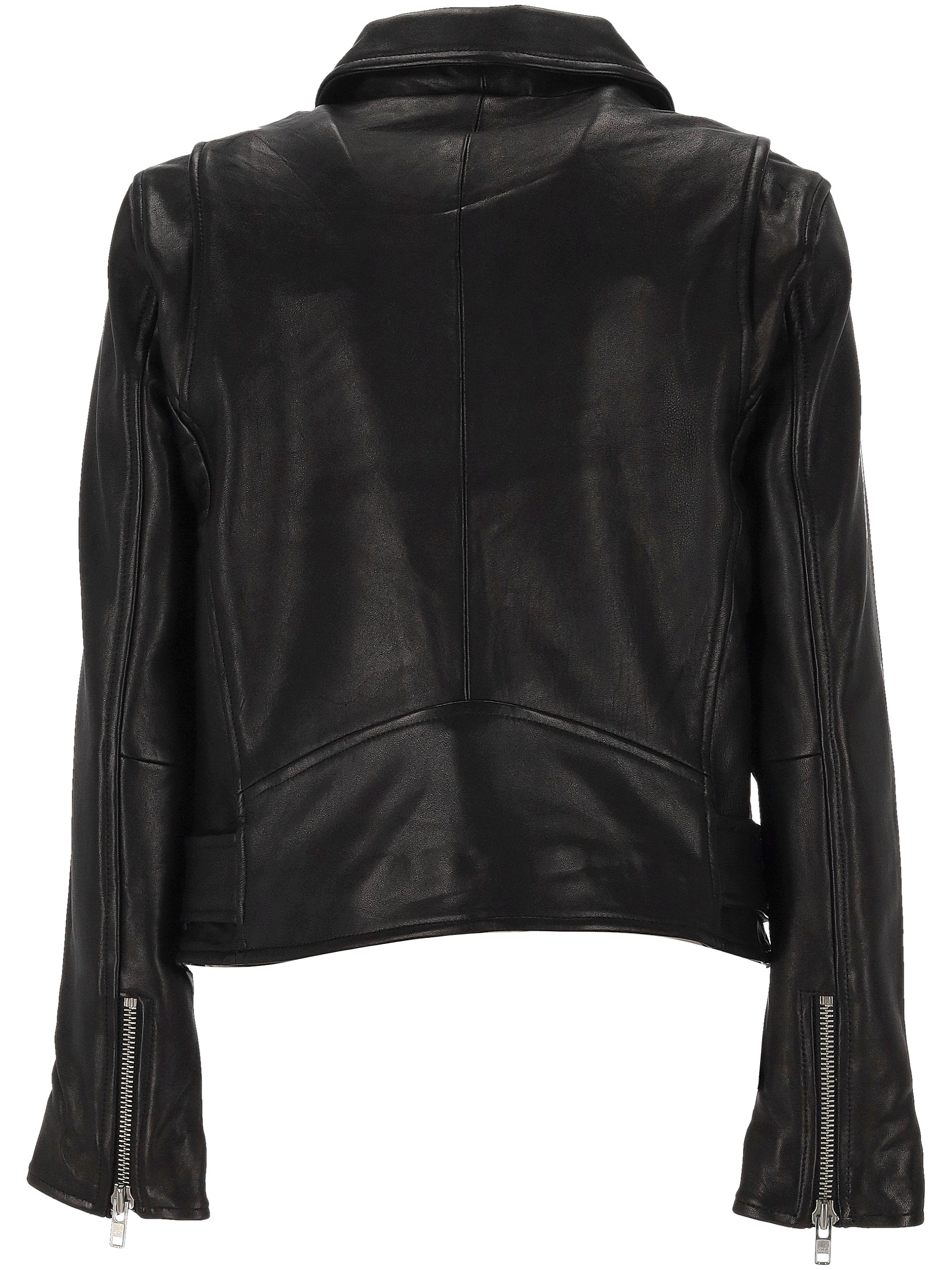 Leather Biker JacketAsymmetric zip on the frontBelt at the waistChest pocket with zipZippered cuffsSide pockets with zipper closure