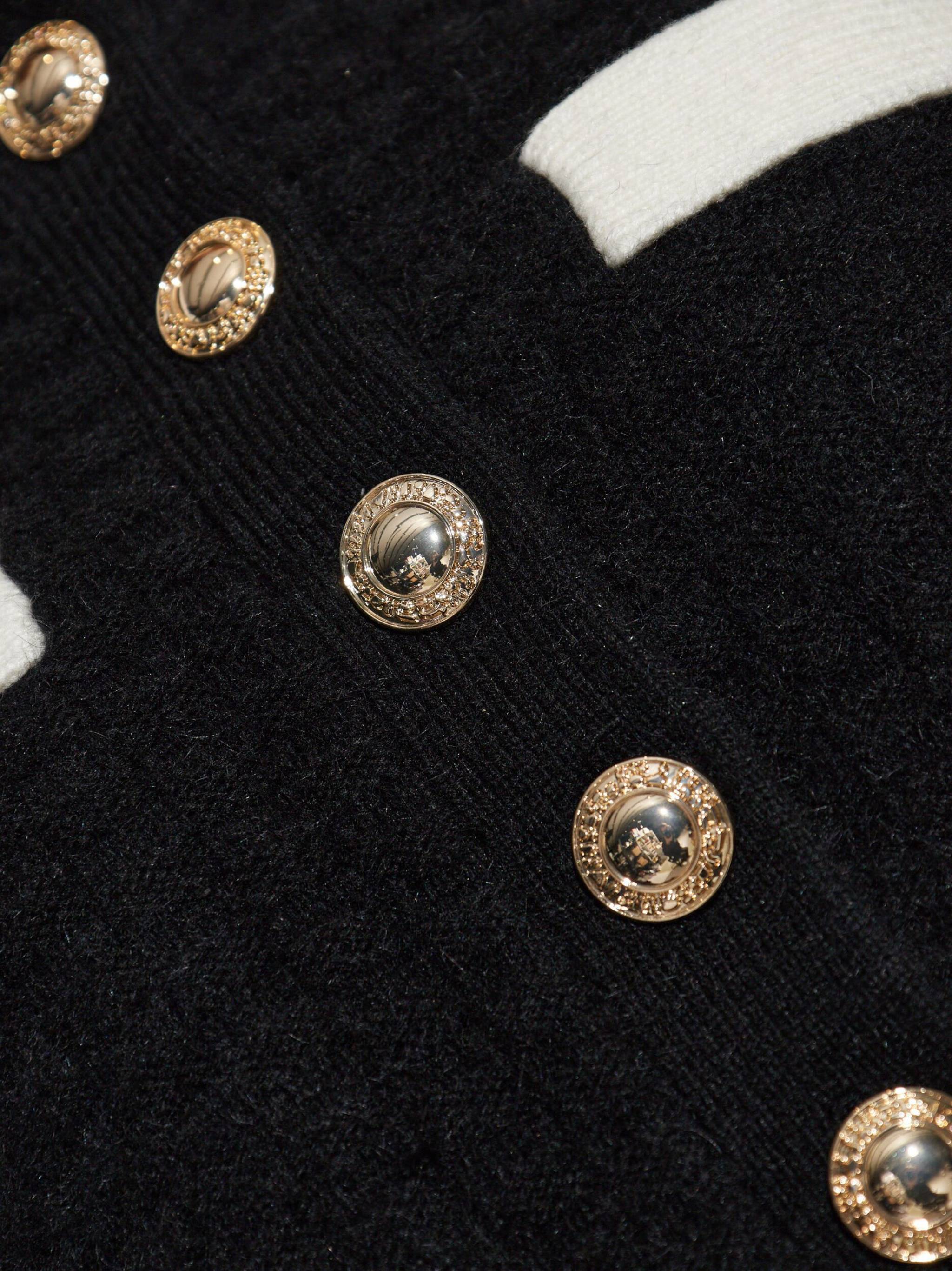 Black front button fastening chest patch pocket ribbed cuffs and hem