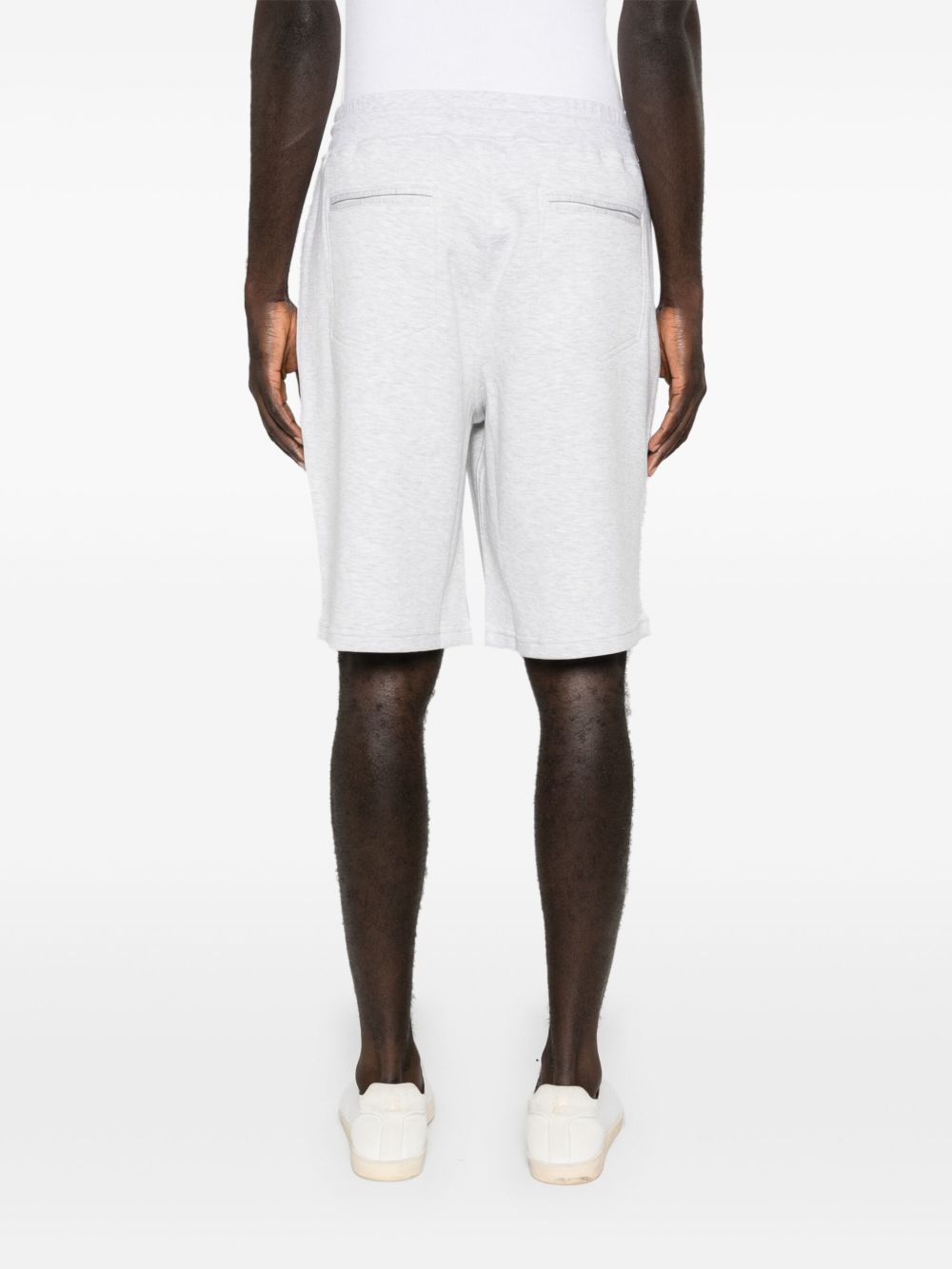 light grey cotton blend jersey texture melange effect two side zip-fastening pockets knee-length two rear jetted pockets elasticated drawstring waistband