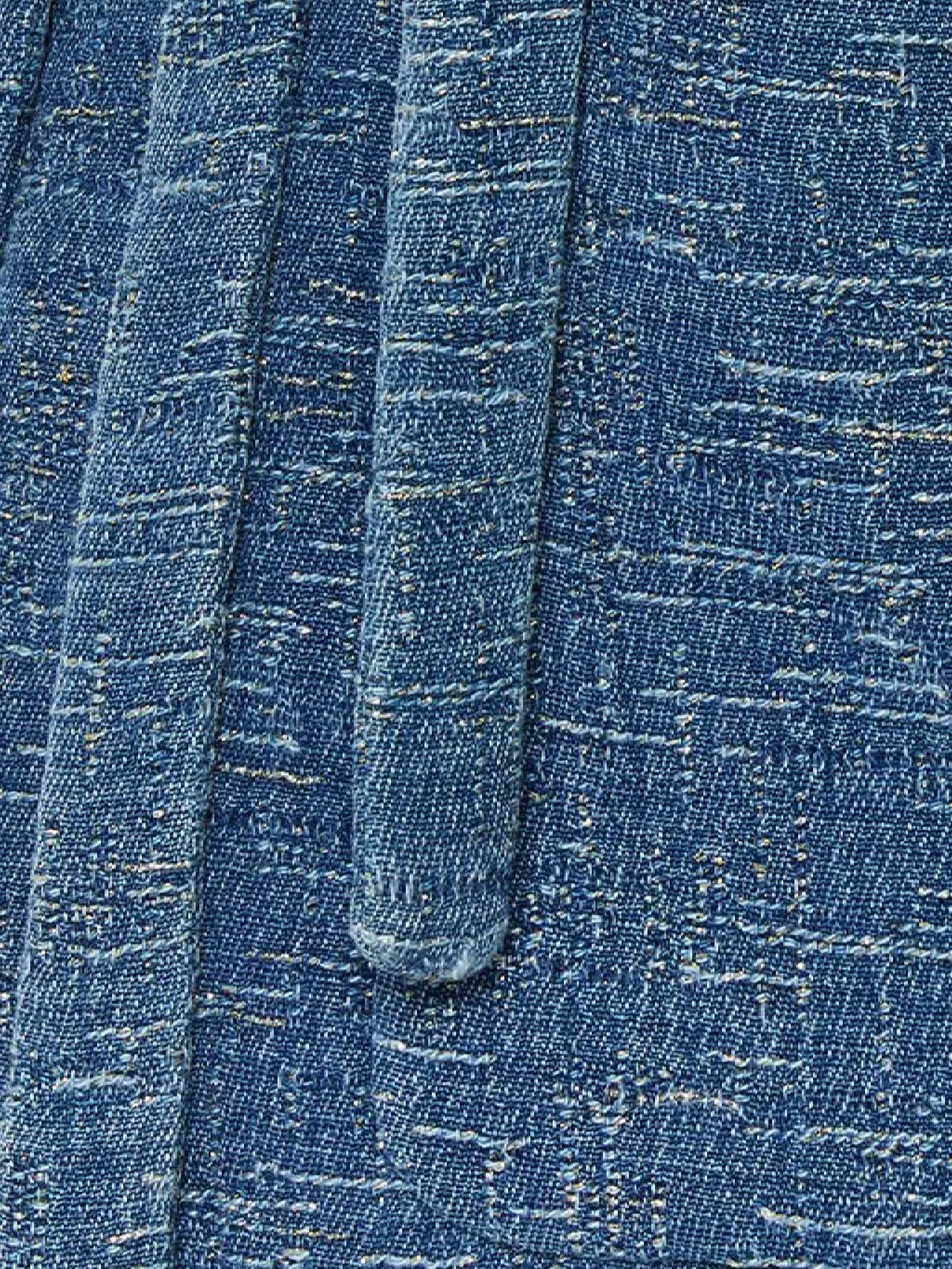 indigo blue front tie fastening two front patch pockets logo plaque cap sleeves