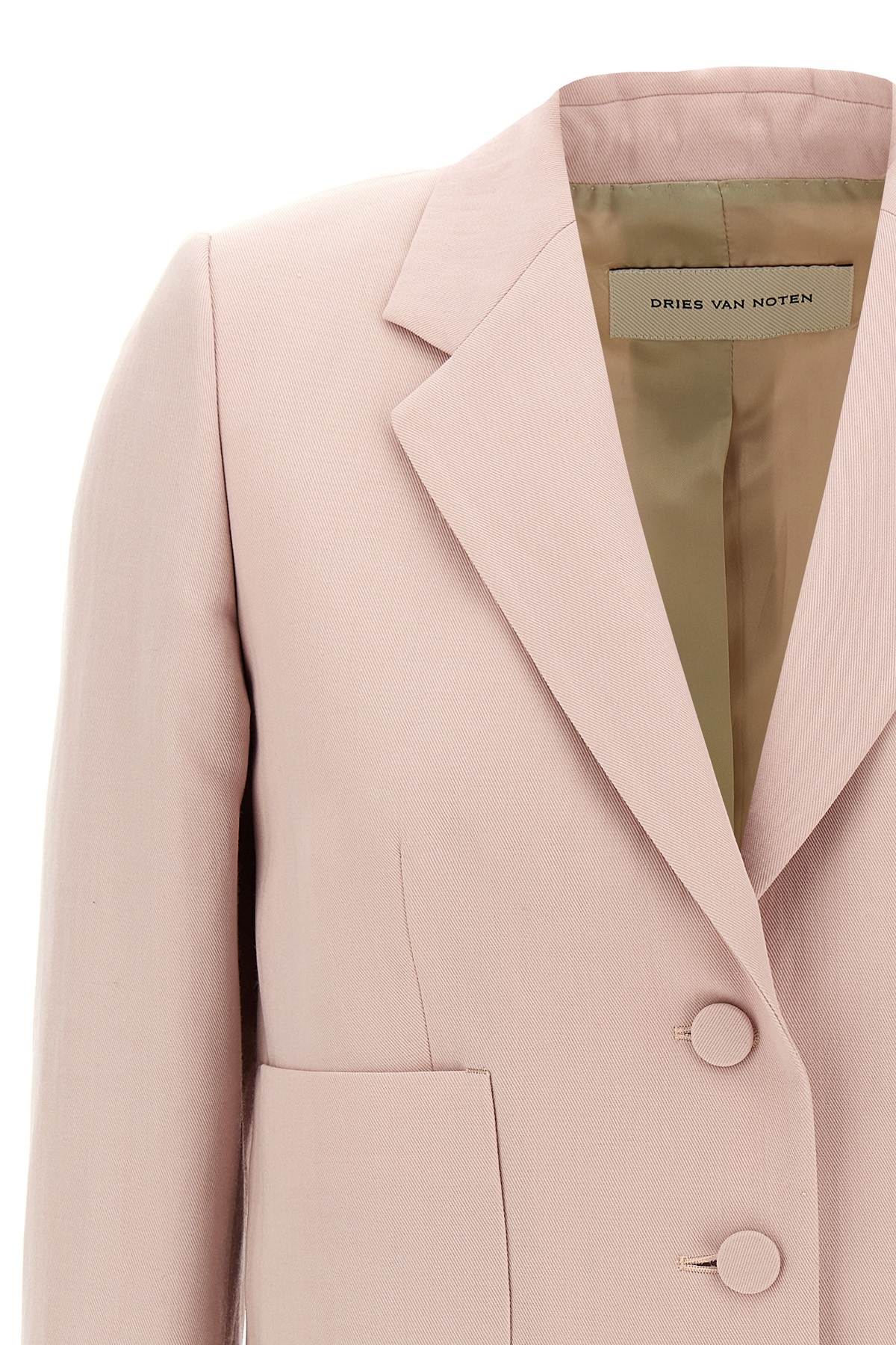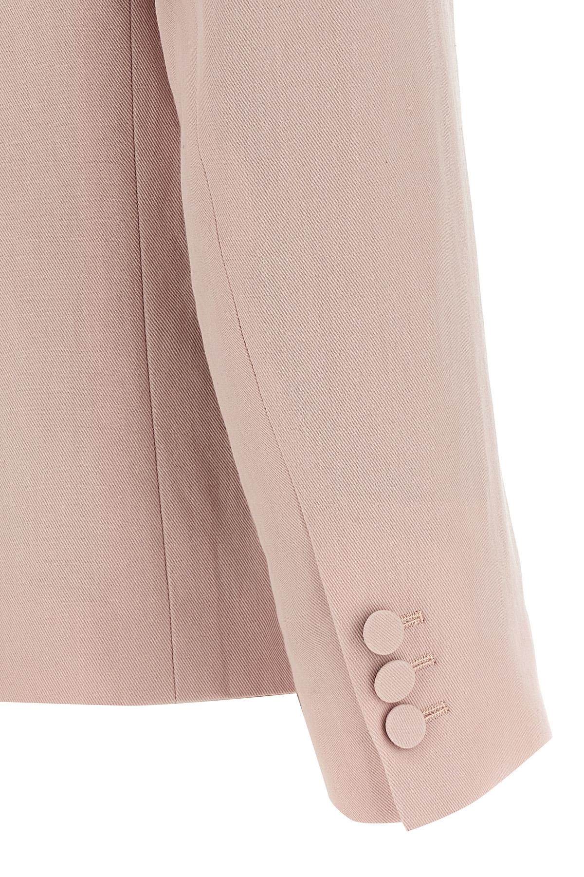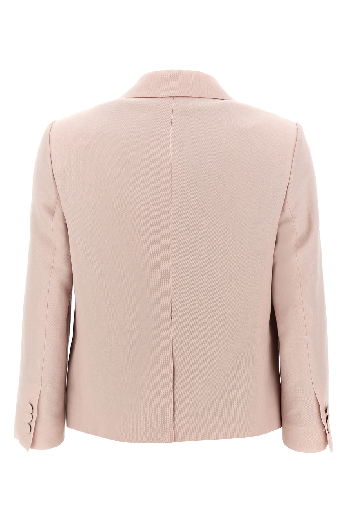 'Bamis' single-breasted crop blazer in wool and paper yarn blend with front button closure, mirror lapels, pockets, long sleeves, slightly padded shoulders, back split, lining.
