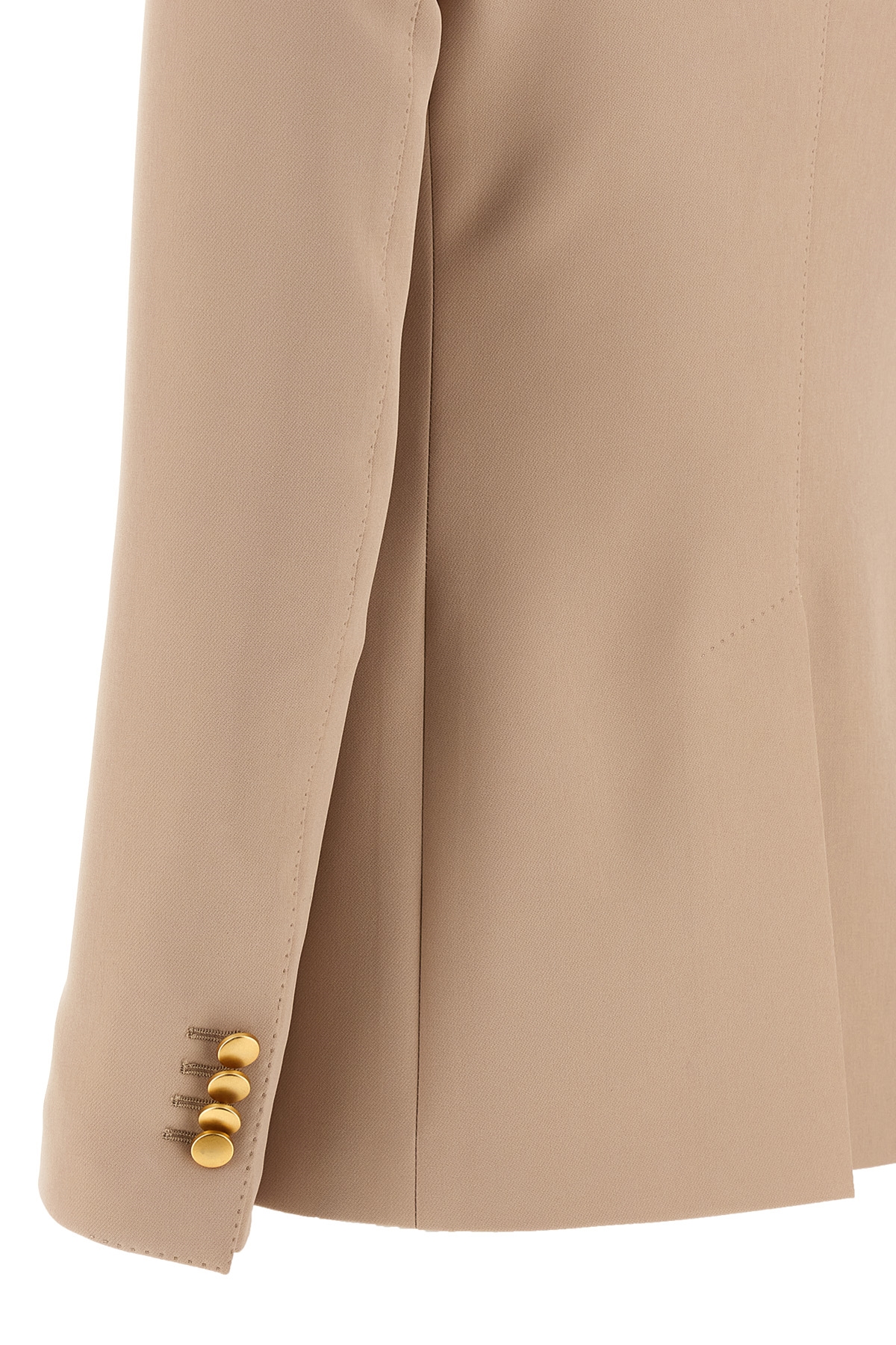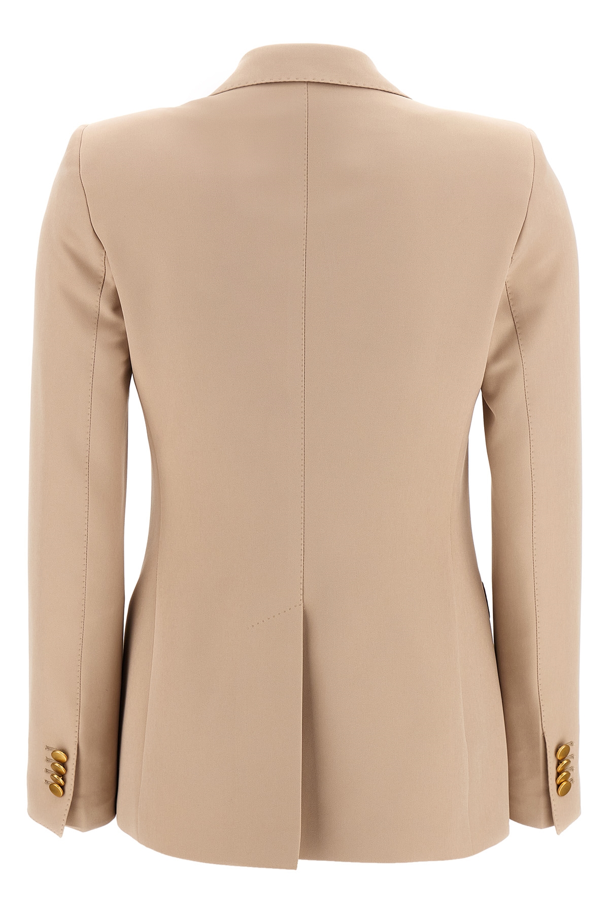'Parigi' dress in stretch fabric consisting of double-breasted blazer with button closure, peak lapels, padded shoulders, long sleeves, back slit and pants with ironed pleat, zip and hook closure, pockets.