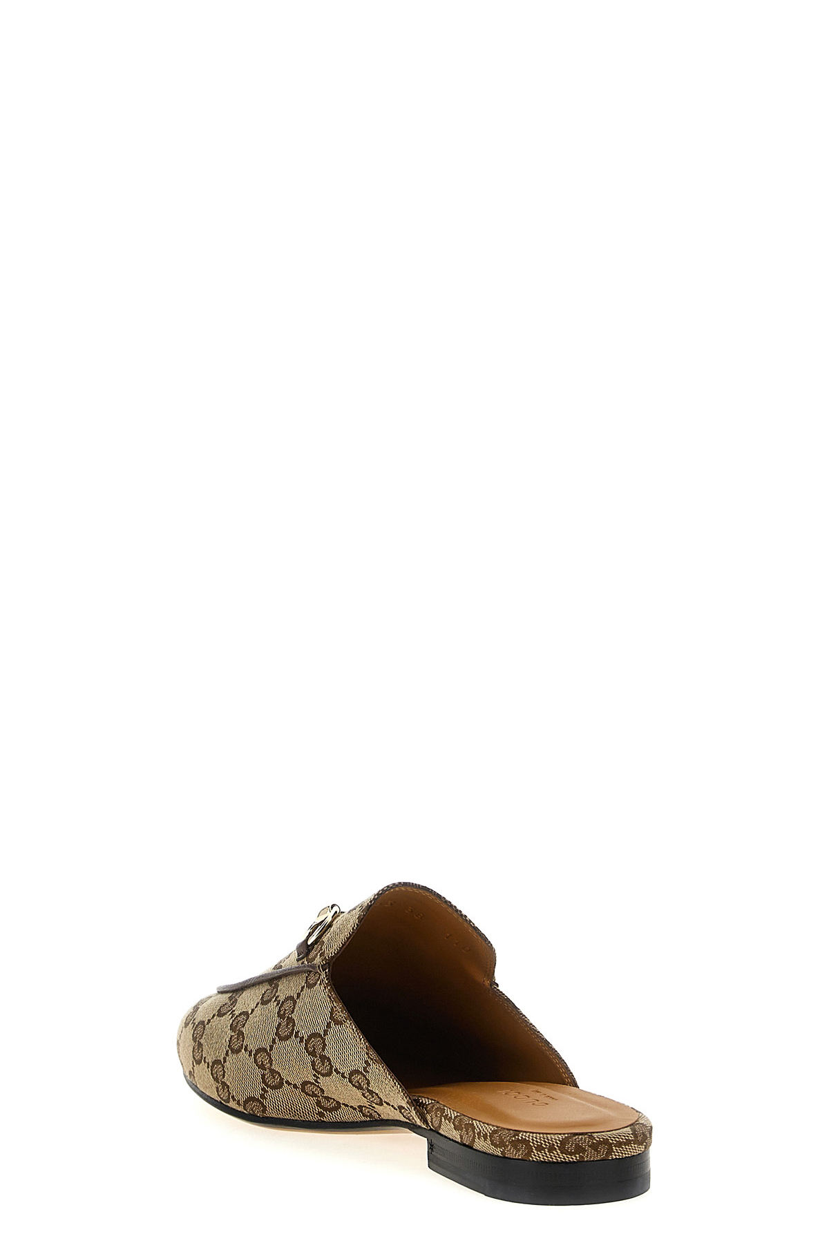 'Princetown' slipper in Original GG fabric with leather details, front metal clamp, leather sole.