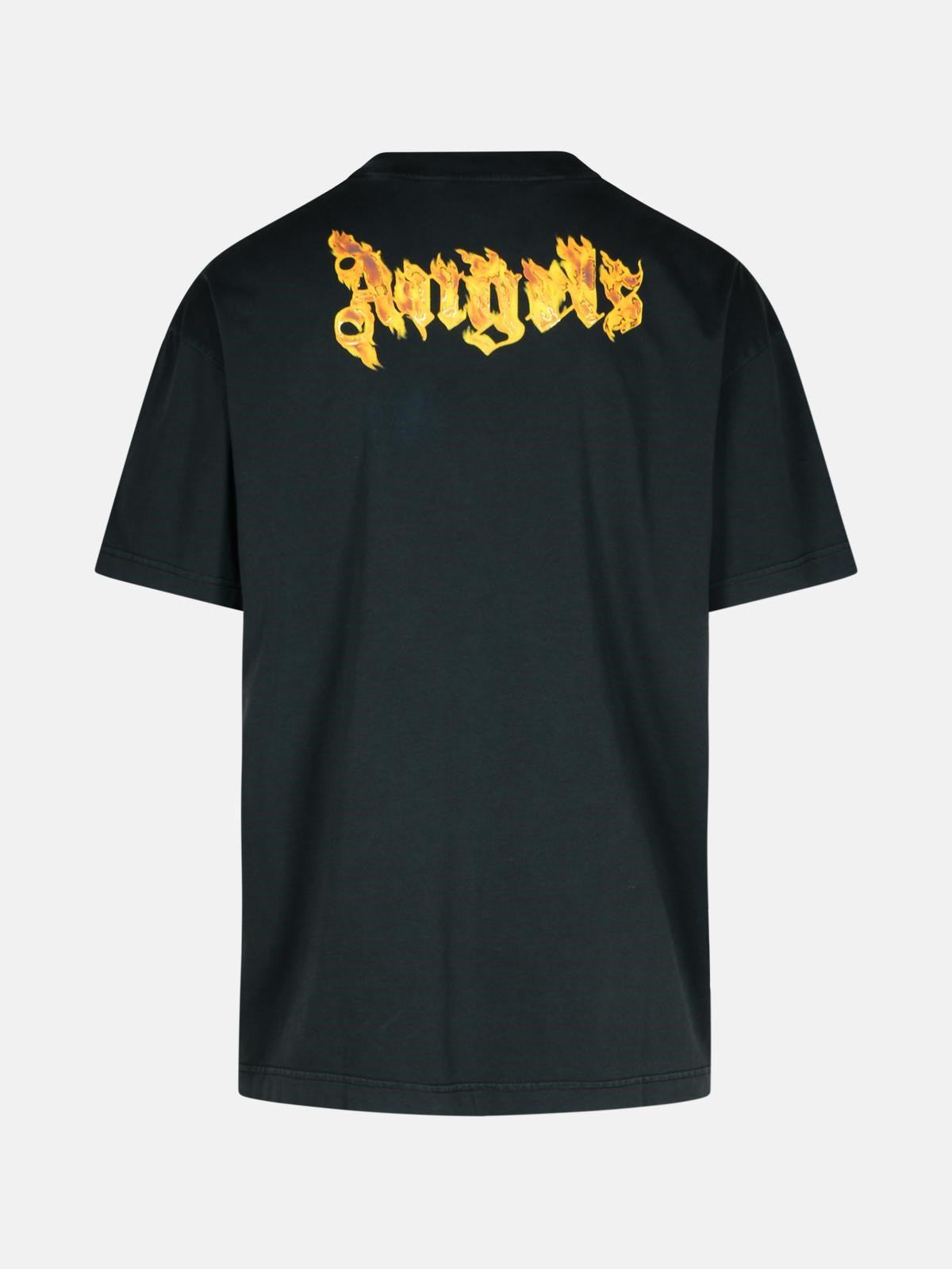 'BURNING PALM' BLACK COTTON OVERSIZE T-SHIRT