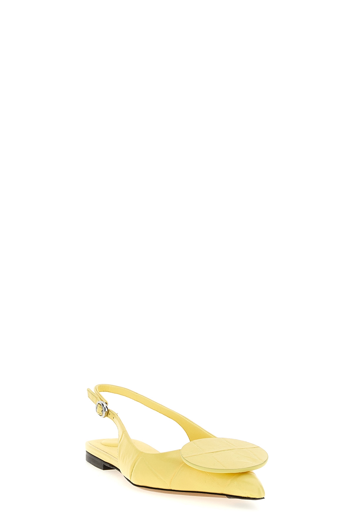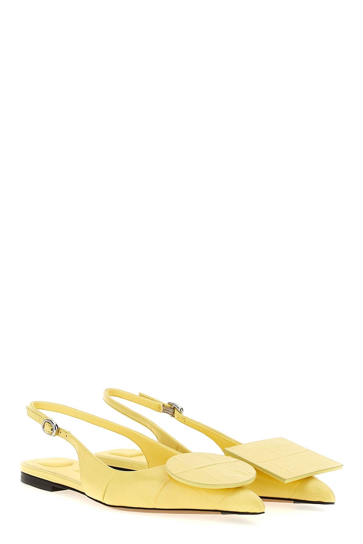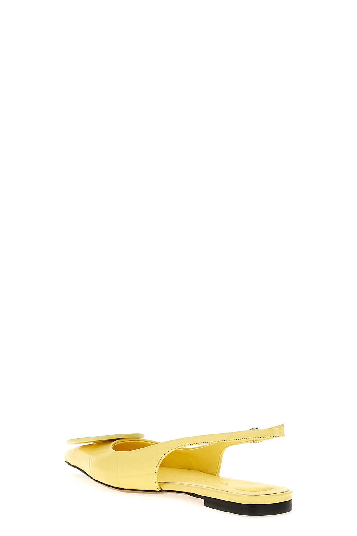 'Duelo P' crocodile-effect embossed leather slingbacks, pointed model with different front detail application for each shoe, adjustable strap, padded insole, leather sole.